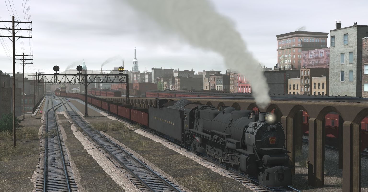 Tags: Trainz Railroad Simulator 2019, PRR pitts steve, Default, PRR M1b Engine, Huddersfield Tram #28, PRR M1b Tender, PRR P70 Coach 3473, PS-3 2 Bay CRR, USRA C Gondola PRR, PRR N5c Caboose 2, 40ft Boxcar UP B-50-24, 40ft Boxcar VGN, PRR P70 Coach 4382, 40ft Boxcar BM