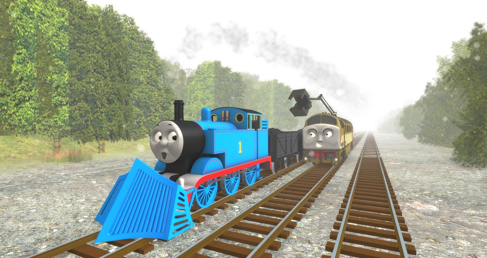 Tags: Trainz: A New Era, CGI Countryside, Flying Cam, Thomas The Tank Engine 2012, Diesel 10 the Class 42 Warship, Sodor Snowplough - Type 1 (Blue), Troublesome Truck - Grey (Large Face), Sodor Brake Van Type 1 - Grey