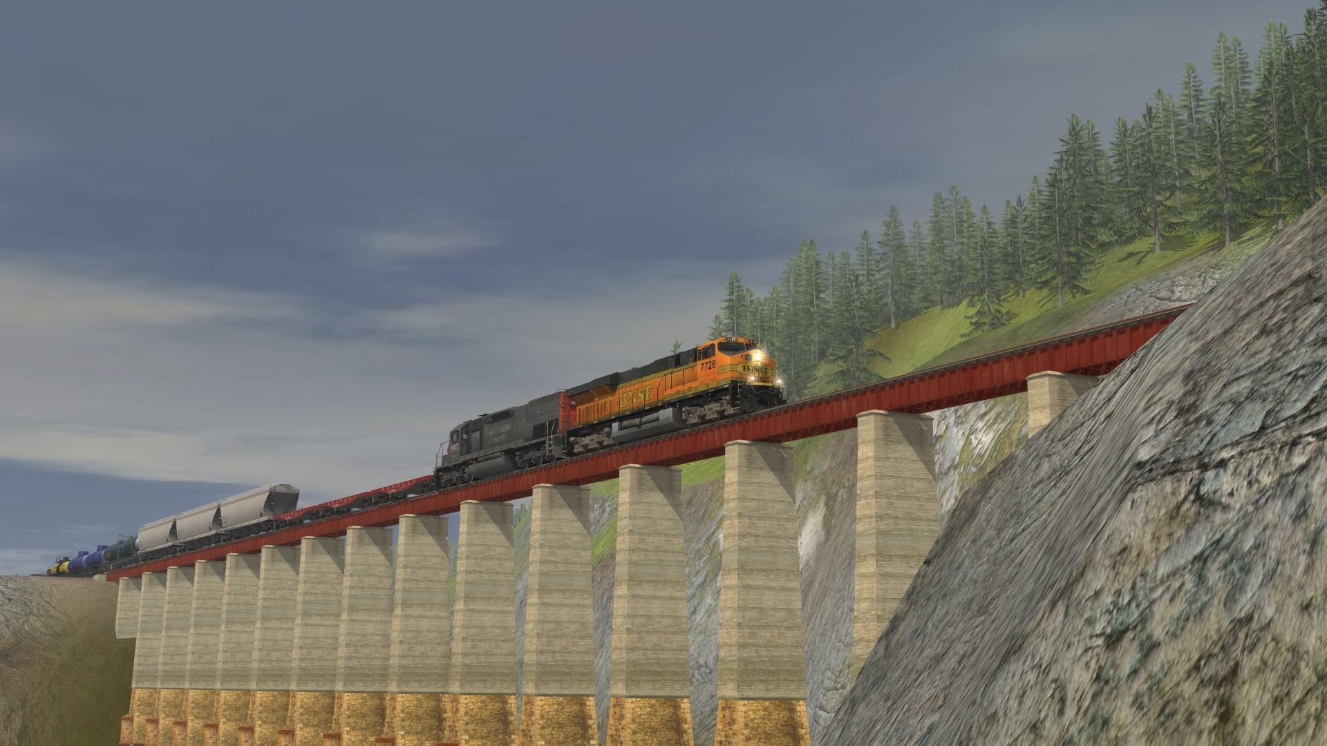 Tags: Trainz: A New Era, Kickstarter County, BNSF ES44DC H2, SP SD40T-2, PRR FM flat car, JRPX ACF Centerflow 4 Bay round hatch, Oil Tanker UTLX 60 Ft, MN MOW GATX, Penn Salt GATX Tanker, Log Wagon Short Knuckle, Mill Gondola 52' Railgon, Mill Gondola 52' WL&G (5700 series), 40ft Boxcar ACL 01