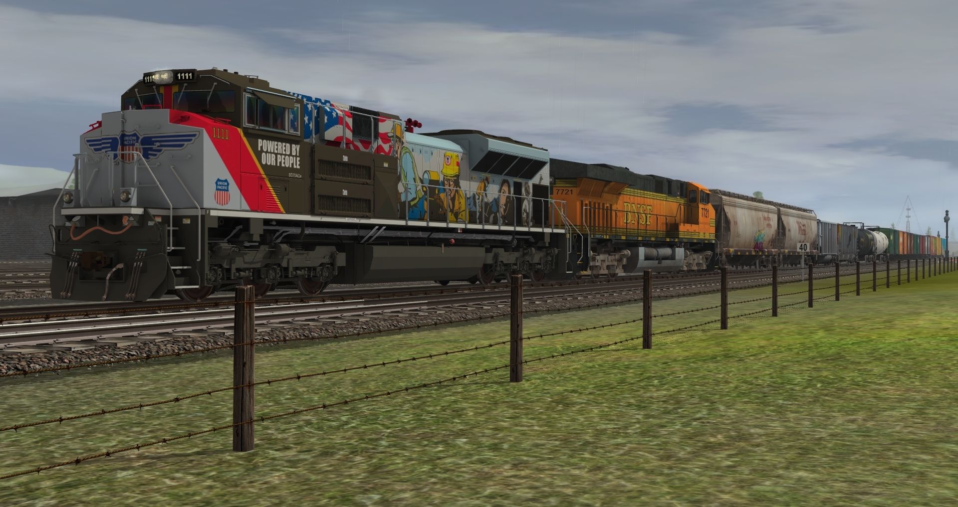Tags: Trainz: A New Era, Kickstarter County, UP SD70ACe #1111, BNSF ES44DC H2, Custom ACF 3 Bay - Winchester & Western, Custom ACF 3 Bay - W Farms LLC, Custom C80 - Havenwood Southern, Custom 100 Ton Hopper - MRM, Custom 23000 gal tank - BundleStars, Custom 23000 gal tank - HK Oil, Custom 40' Boxcar - AU Logitistics, Custom 40' Boxcar - a giberiginal Game Store, Custom 40' Boxcar - Grizzled Aussie's Dark Rum
