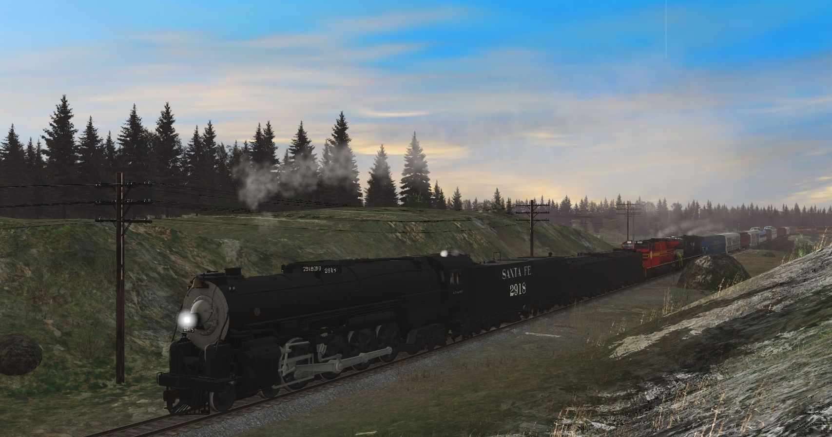 Tags: Trainz Railroad Simulator 2019, Legacy of the Burlington Northern, Default, ATSF #2918 Class Northern, NS ES44AC NS Heritage 8114, NS ES44AC, ATSF #2900 Class Northern Tender, N&W Aux Tender Unlettered, TVRM Coach 873, SOU Lounge Car 'Crescent Harbor, TVRM Pullman Coach 1000, SAL Sun Lounge Car 'Hollywood Beach, WAB Dome Car 'Jackson Square, TVRM Coach 661