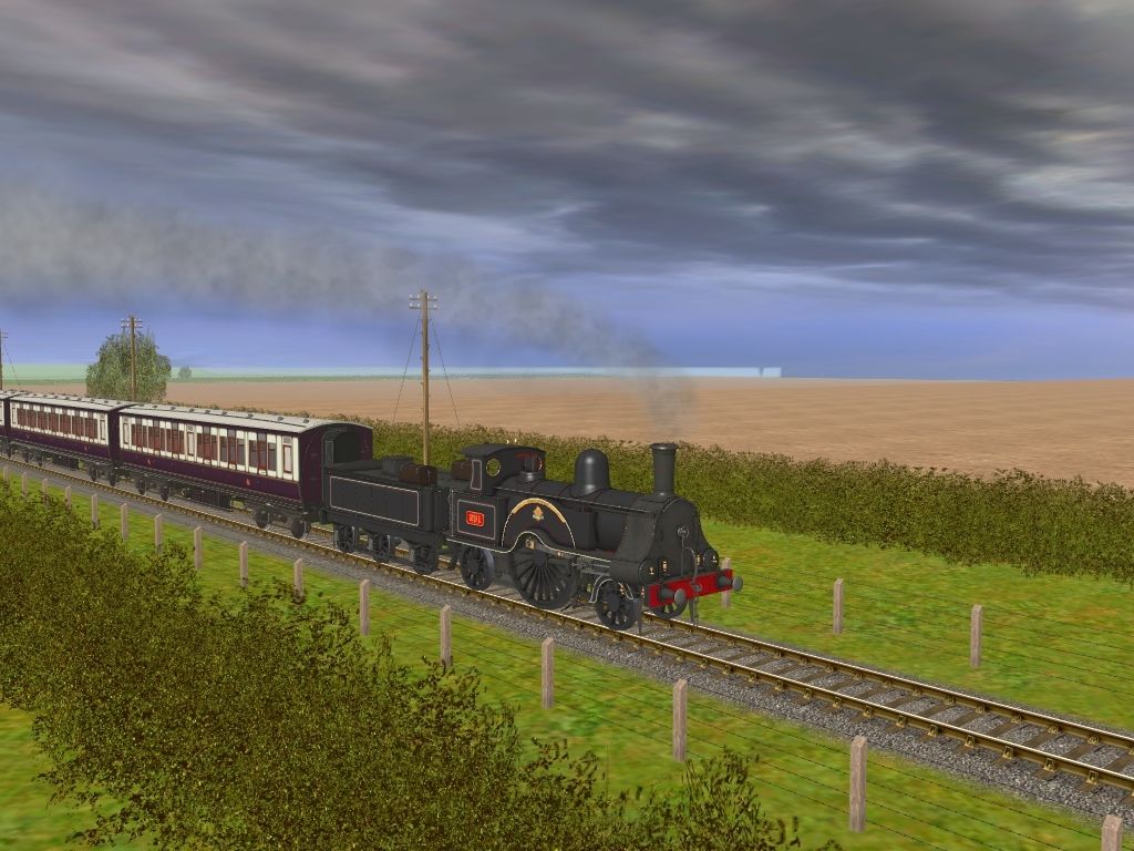 Tags: Trainz: A New Era, A different Somerset And Dorset, test run, LNWR Ramsbottom Problem Class, LNWR Ramsbottom 1800 Gallon Tender, LNWR CK Corridor Composite (D138), LNWR TK Corridor Third (D268), LNWR BCK Corridor Brake Composite (D216), BR Mk1 SO Carmine, BR Mk1 CK Carmine