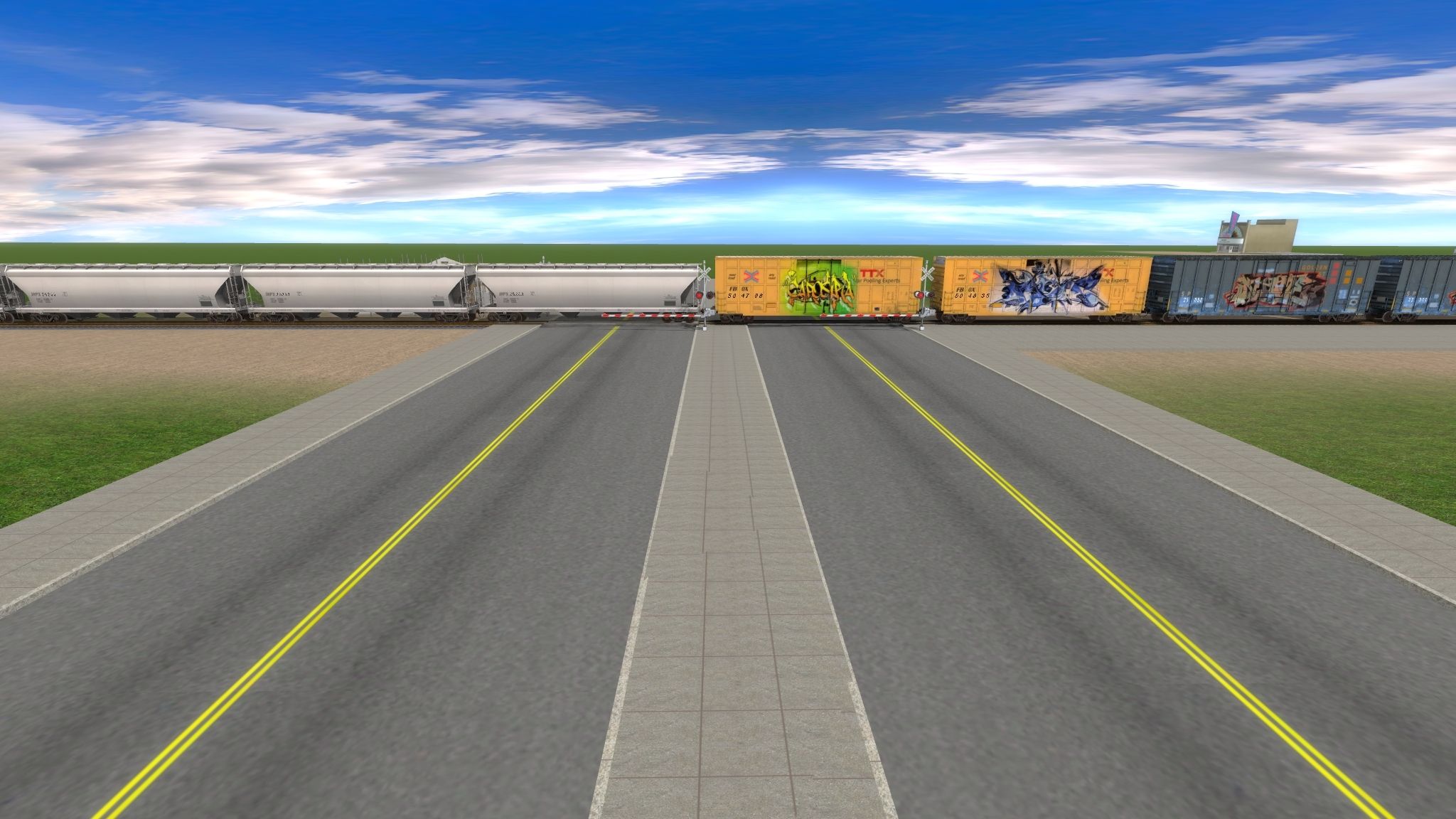 Tags: Trainz: A New Era, Santa Fe Productions Route, Default, BNSF ES44DC Dirty 1, HP_50ft_Boxcar_TTX_#08, HP_50ft_Boxcar_SP_#01, HP_50ft_Boxcar_BN_#07, JRPX ACF Centerflow 4 Bay round hatch, JRPX 20800 gal tank car, IC Airslide Hopper, HB Cylindrical Hopper, HOKX 20800 gal tank car, Grainporter Cvd. Hopper BN #485024 DES, GBCX Cylindrical Hopper