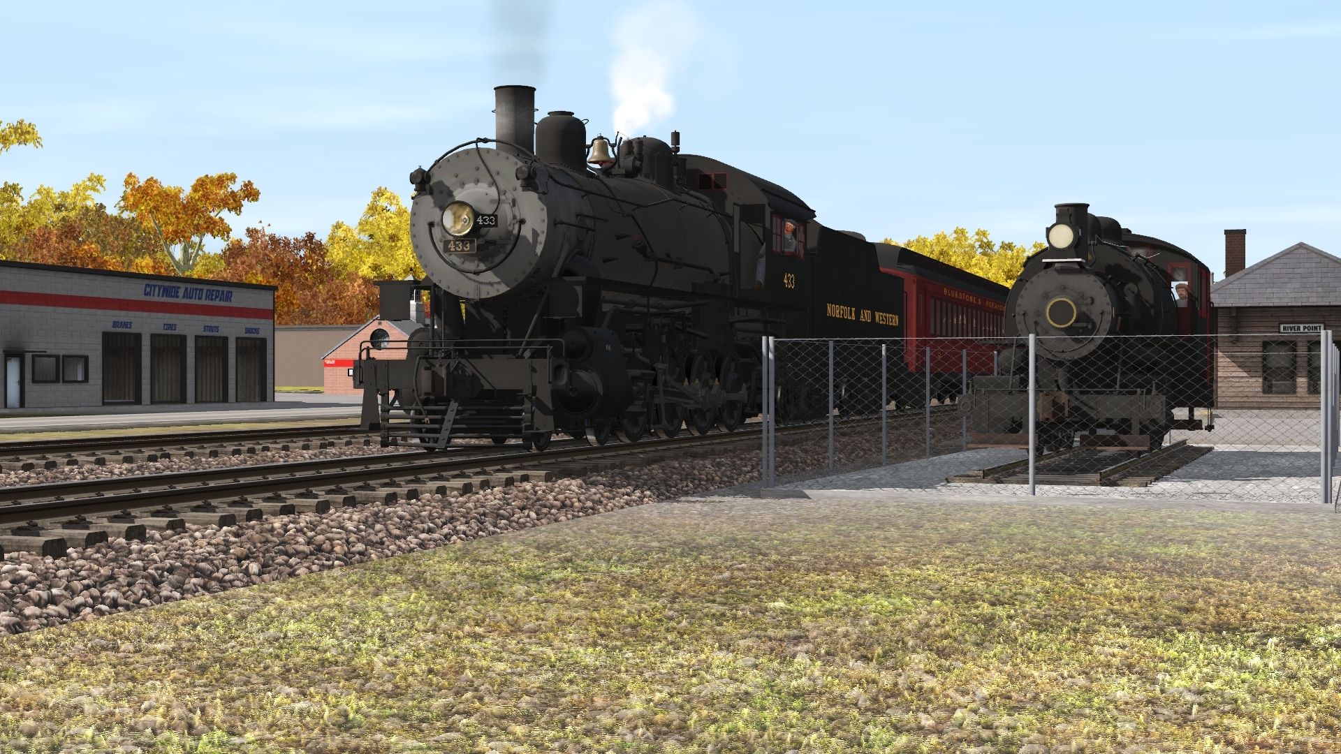 Tags: Trainz Railroad Simulator 2019, B&PS yard, Default, B&PS 433 Engine, ALCO 0-6-0T Blank v1, B&PS 433 Tender, B&PS Gondola, USRA C Gondola SOU, 38' X-3 Tank Car STLX, N&W 55 Ton Hopper, PRR LO 2003, B&PS Coach Roller Bearings, NKP 40' Boxcar, 40ft Boxcar USRA SS NKP
