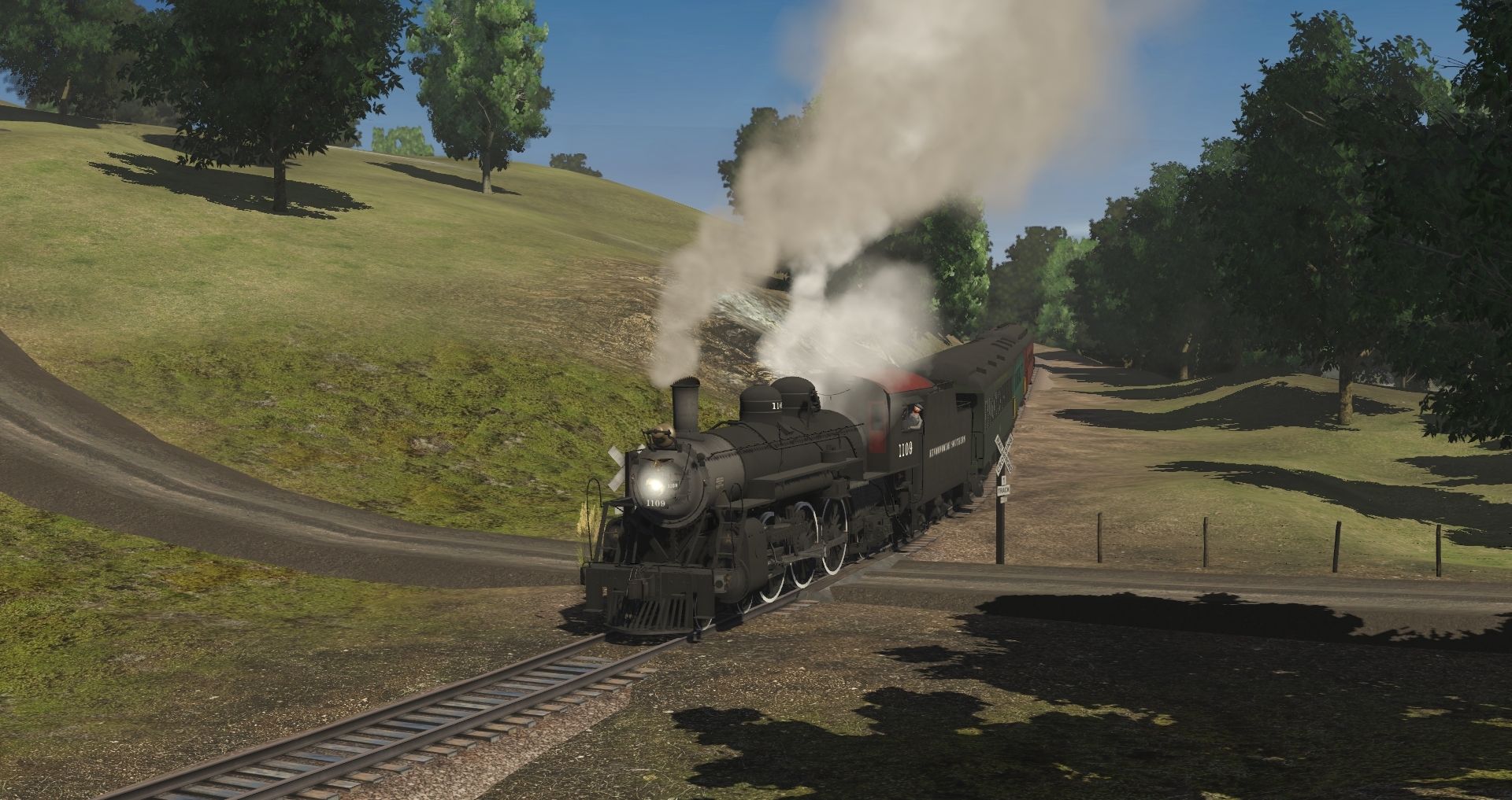 Tags: Trainz Railroad Simulator 2019, Coal Country, KSRy 1109 Engine, KSRy Pacific Tender, Lackawanna Boonton Coach V2, Reading Archroof Coach 2-Tone, PRR P70 Coach 3774