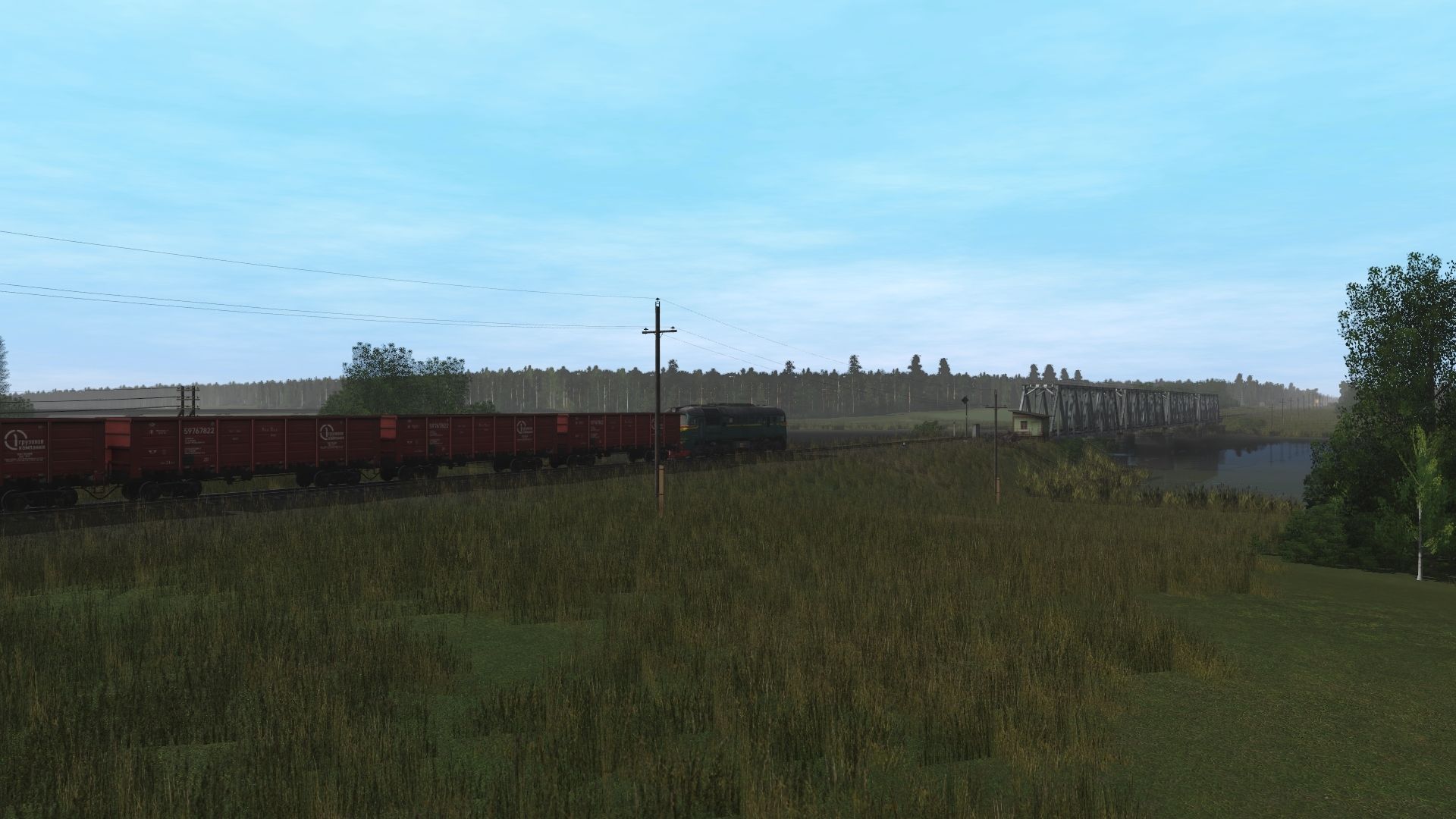 Tags: Trainz Railroad Simulator 2019, Belarusian woodland, №2135 Detsel - Novosady Day, М62-1628, xVg-12-7023-02 полувагон #1, xVg-12-9008 платформа #1