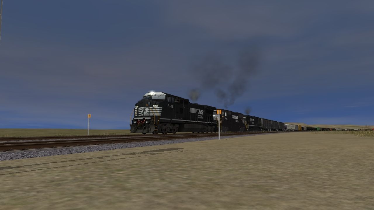 Tags: Trainz: A New Era, Crawford NE N3P, Black and whites across the plains, NS Horsehead C40-8W, EMD SD70 Norfolk Southern (PRR), GE C40-8 NS Horsehead, Carbon Black Covered Hopper Ver 5 DES, Tanker 16000 gals UTLX, MP Trinity 3 Bay Hopper v5, UP Trinity 3 Bay Hopper, INDX 3 P-S 50_6ft Boxcar, 50ftBoxcar ABOX CD Railbox #M, UTLX 20800 Gallon Tank Car, ACFX #27646 3 Bay ACF