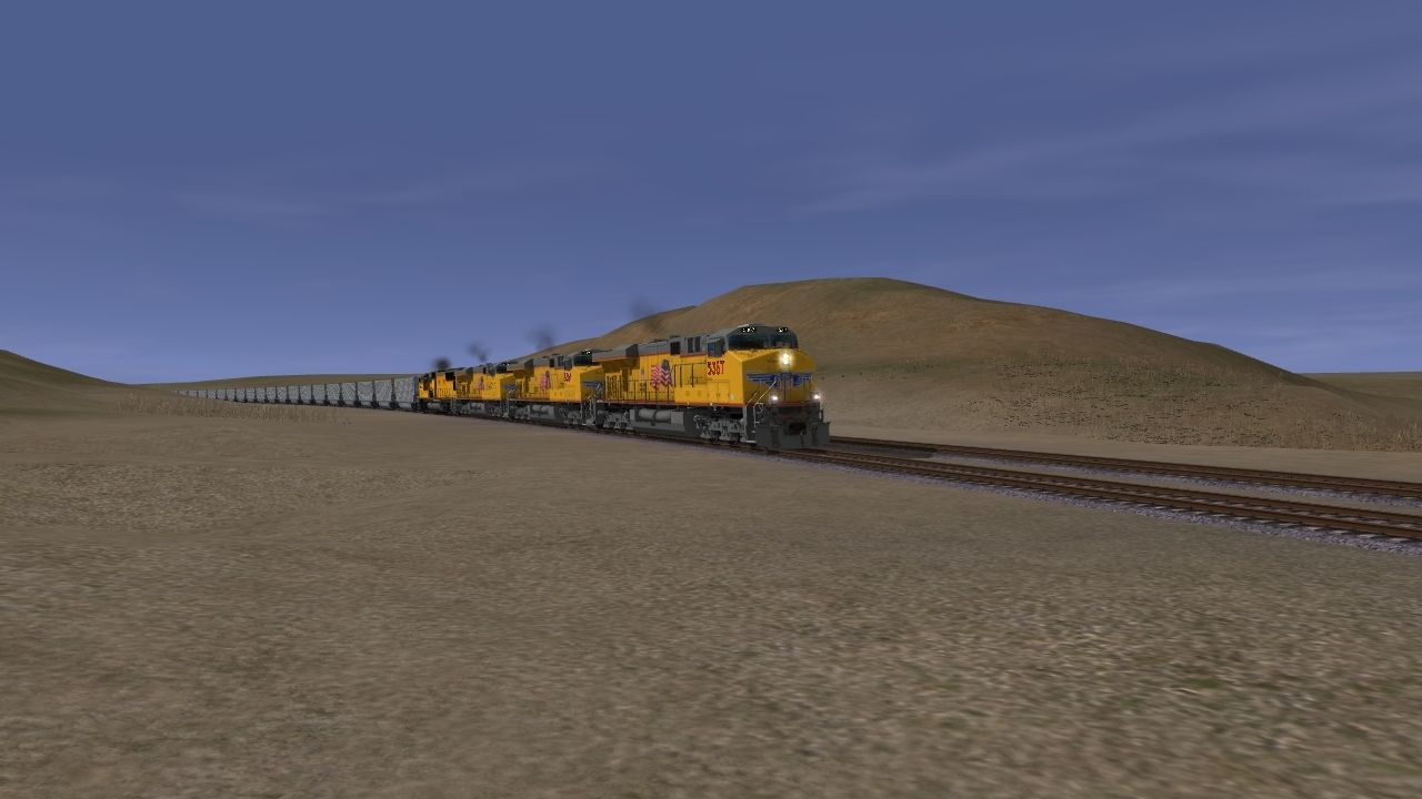 Tags: Trainz: A New Era, Powder River Basin-98 N3P, Loaded uphill, UP ES44AC, UP letters painted SD70M, Freightcar America Bethgon Coalporter CMO (UP), Freightcar America Bethgon Coalporter CMO (UP) 2, Freightcar America Bethgon Coalporter UP 3, Freightcar America Bethgon Coalporter UP