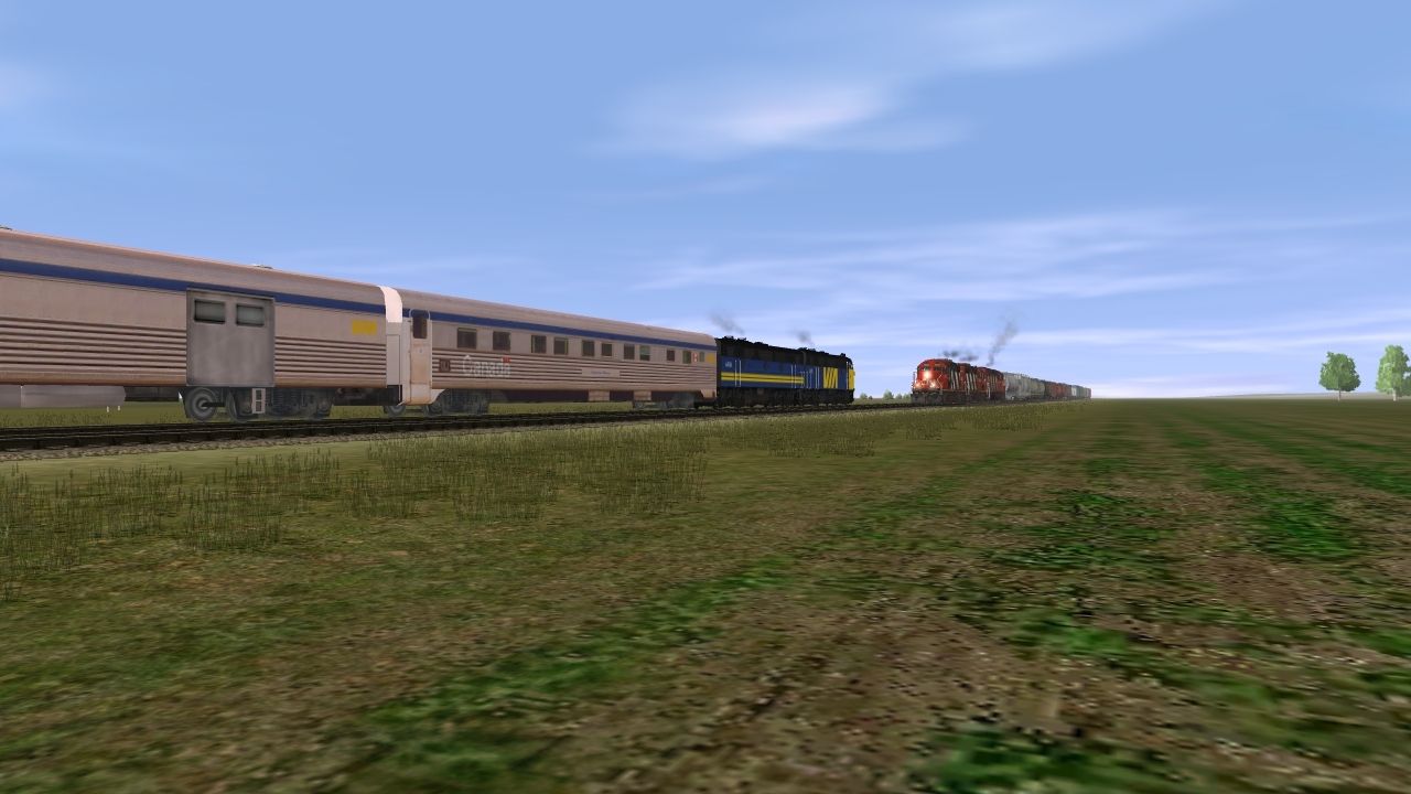 Tags: Trainz: A New Era, Canadian Prairies, Quick run from the 80s, VIA F7A 1432, CN GP9rm #4021, EMD GP9rm CN #4035, EMD SD40 CN #5003, VIA F7B 6531, VIA Baggage, VIA Alexandra, VIA Cameron Manor, VIA Rail Budd 4001 HEP2 Coach, VIA Rail Budd Dome Buffet Coach, CN Cylindrical Grain2