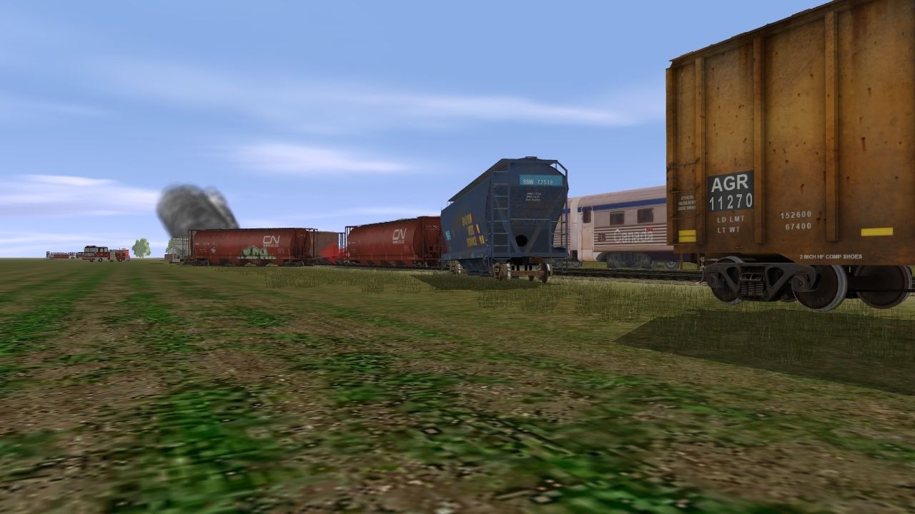 Tags: Trainz: A New Era, CN-VIA crash diorama, Collision, VIA F7B 6531, VIA F7A 1432, EMD SD40 CN #5003, EMD GP9rm CN #4017, CN GP9rm #4021, AGR P-S 50_6ft Boxcar, VIA Baggage, Aggregate Hopper Versaflood VULX (VULCAN), VIA Cameron Manor, ACF 4650 Centerflow Hopper SSW Golden West Weathered DES, VIA Alexandra