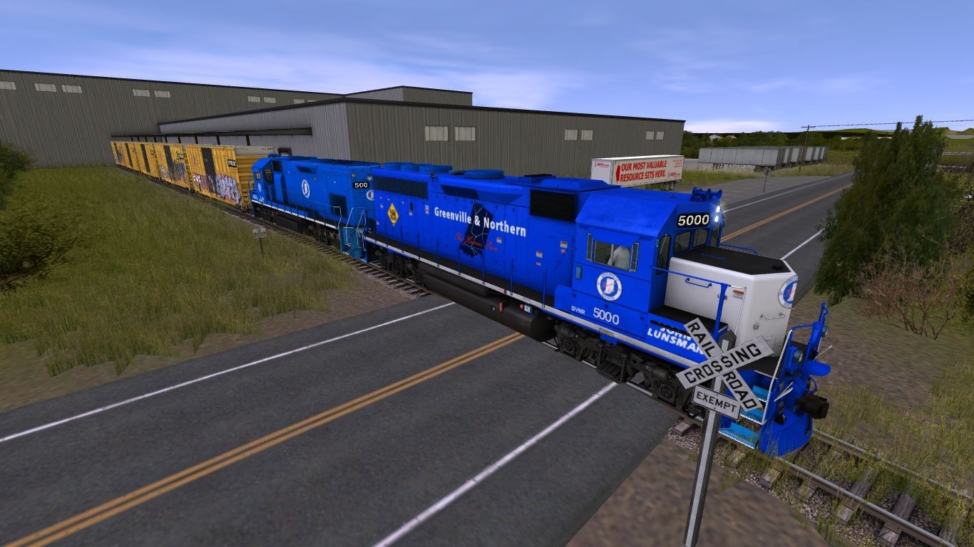 Tags: Trainz: A New Era, Greenville & Northern, Default, Greenville & Northern #5000 GP40-2, Greenville & Northern #500 GP15TR, Invisible Train, 40ft Boxcar Derelict, 50ft High Cube Boxcar FBOX, 50ft High Cube Boxcar BNSF, 50ft High Cube Boxcar CSXT, 50ft High Cube Boxcar CRLE, MP (Dirty) Cylindrical Hopper, MIRR #3 Trinity 3 Bay Hopper, MIRR #2 Trinity 3 Bay Hopper