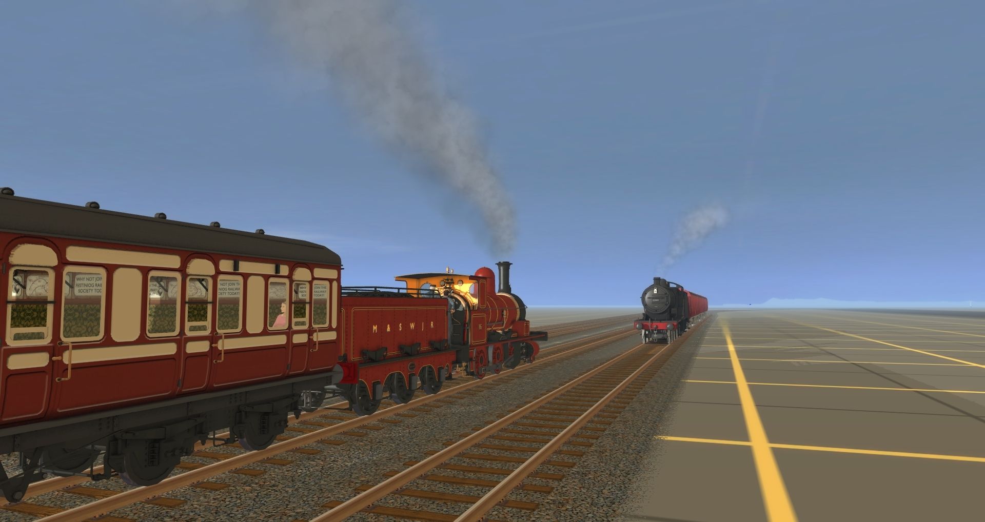 Tags: Trainz: A New Era, F&WVJR Waterdawn-Westbridge Branch T:ANE SP3, church train, M&SWJR 16 ''Galloping Alice'' - Red, BR Midland Compound, Metropolitan Dreadnought First, M&SWJR 16 Tender - Red, Metropolitan Dreadnought Third, Metropolitan Dreadnought Brake (1923), BR 3500 Gallon Tender Lined Early Logo, BR Mk1 TSO Maroon, BR Mk1 BSO Maroon