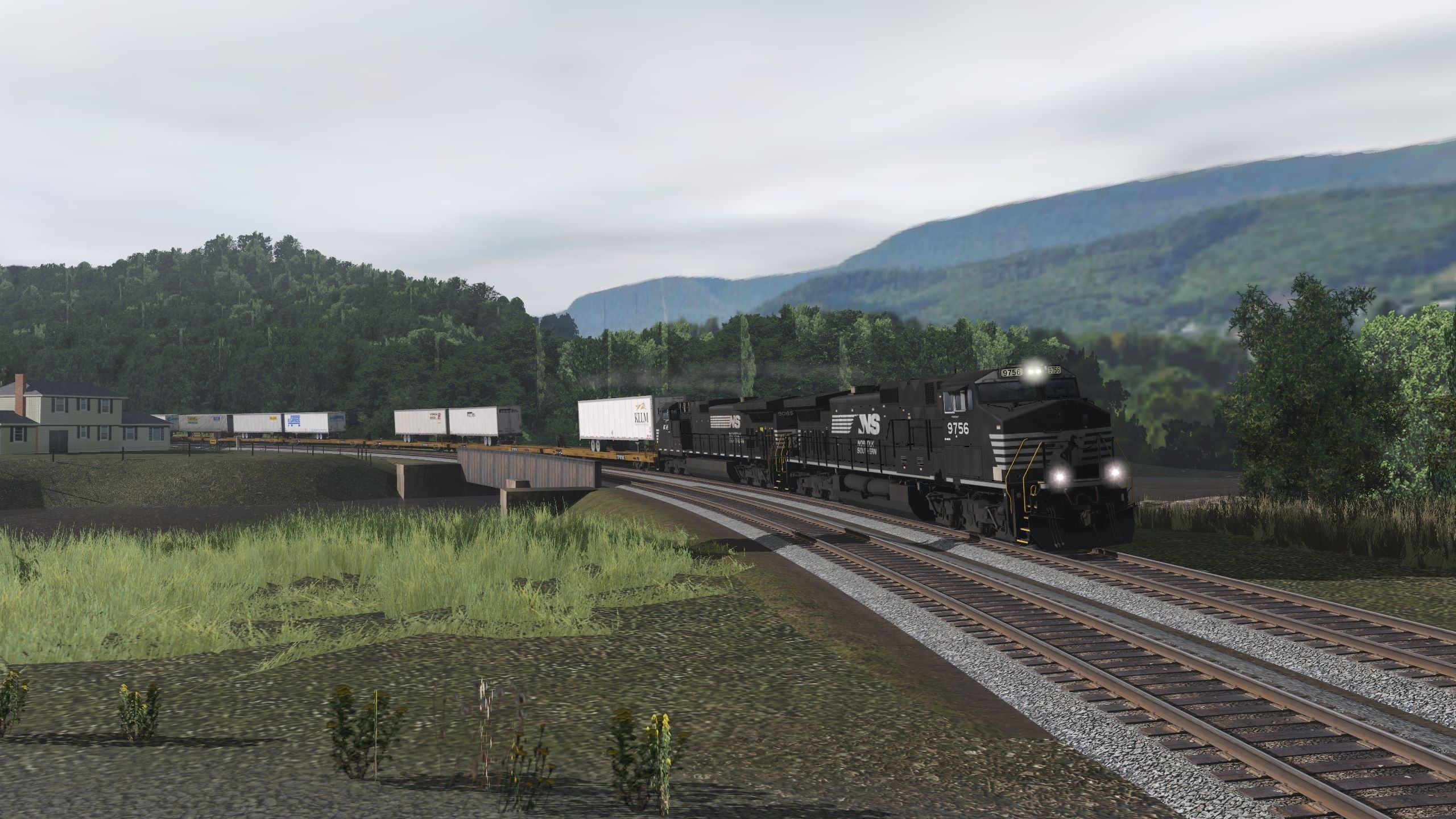 Tags: Trainz Railroad Simulator 2019, Datsun Junction, NS TOFC, NS Horsehead C40-9W, NS C40-9W, 89ft TOFC Flatcar Drawbar, 89ft TOFC Flatcar TTX Long Runner A, 89ft TOFC Flatcar TTX Long Runner B, 89ft TOFC Flatcar TTX, 89ft TOFC Flatcar(2) TTX