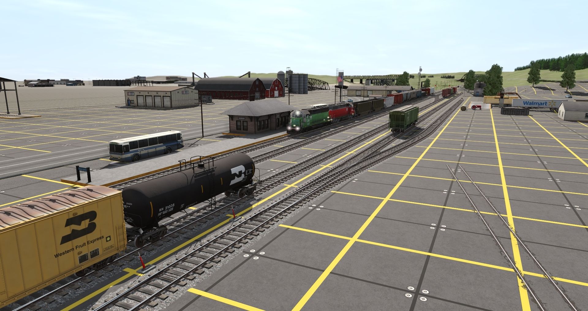 Tags: Trainz Railroad Simulator 2019, Benjamins Route 2019, Cristmas test, CORP GP40-2, CORP GP38-3 No Logo, BN SW1500 (flexicoil), S&GC GP38-2, BN 50' RBL, BN ex-CB&Q 100 Ton Hopper, BN 20800 gal tank car, BNFE White PCF 57' Reefer, BNFE Orange PCF 57' Reefer, BNFE Green PCF 57' Reefer, Bethgon JRLX