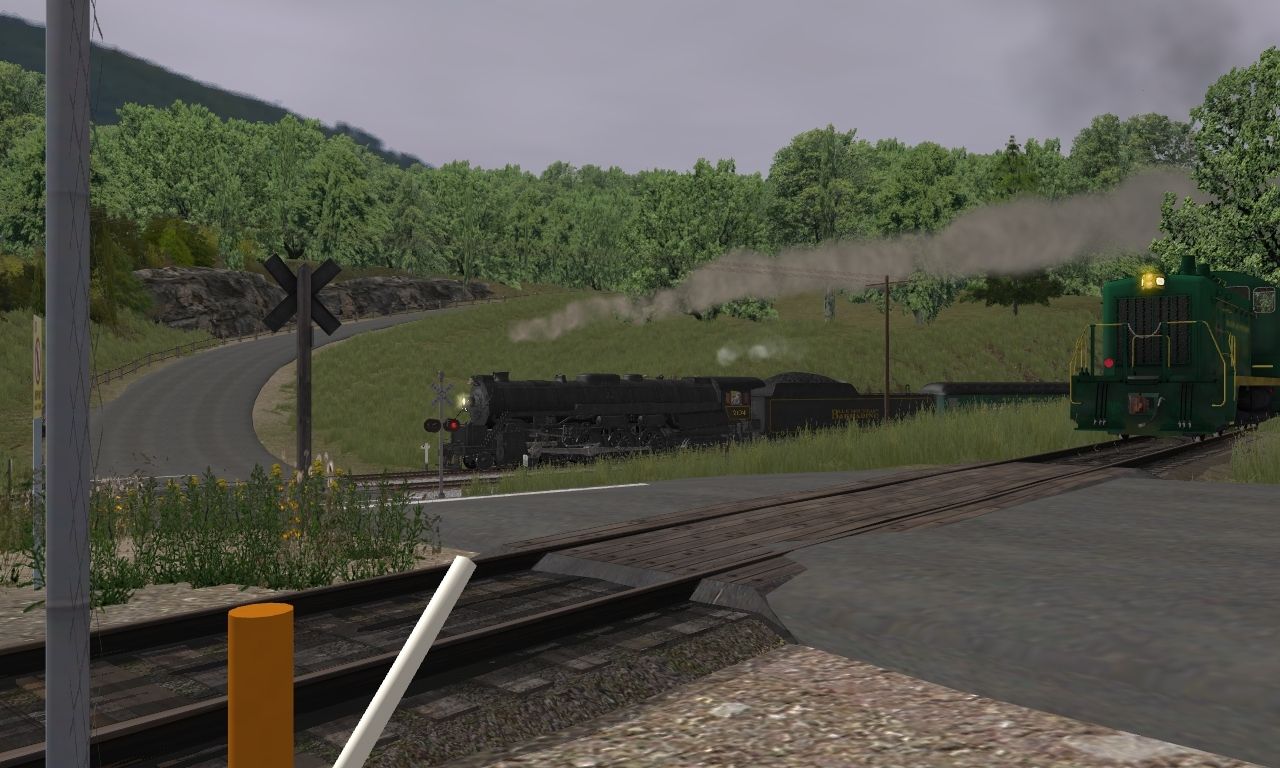 Tags: Trainz: A New Era, Datsun Junction, Datsun Station - RBMN, RBMN SW8 #800 Weathered, BM&R T1 Engine, BM&R T1 Tender, BM&R Coach Green, NS 100 Ton Hopper, BM&R Coach Red