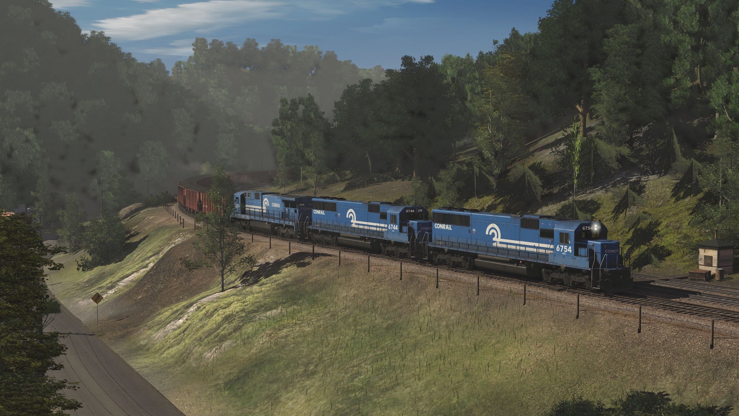 Posted by: epa | Posted:2019-12-25 18:59:05 Caption: Tags: Trainz Railroad Simulator 2019, Coal Country, Default, CR SD50, CR C39-8, CR H43 100T Hopper