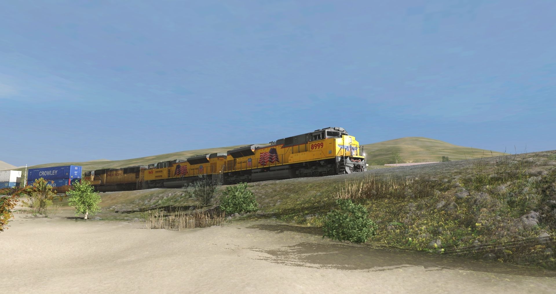 Tags: Trainz Railroad Simulator 2019, TRS19 Mojave Sub Division, UP SD70ACe (late), UP SD70ACe, UP SD70M Letters, UP ES44AC, UP GP9 late (weathered), TTX weathered 53 Husky Stack, Bethgon BNSF, UPFE PCF 57' Reefer white dirty