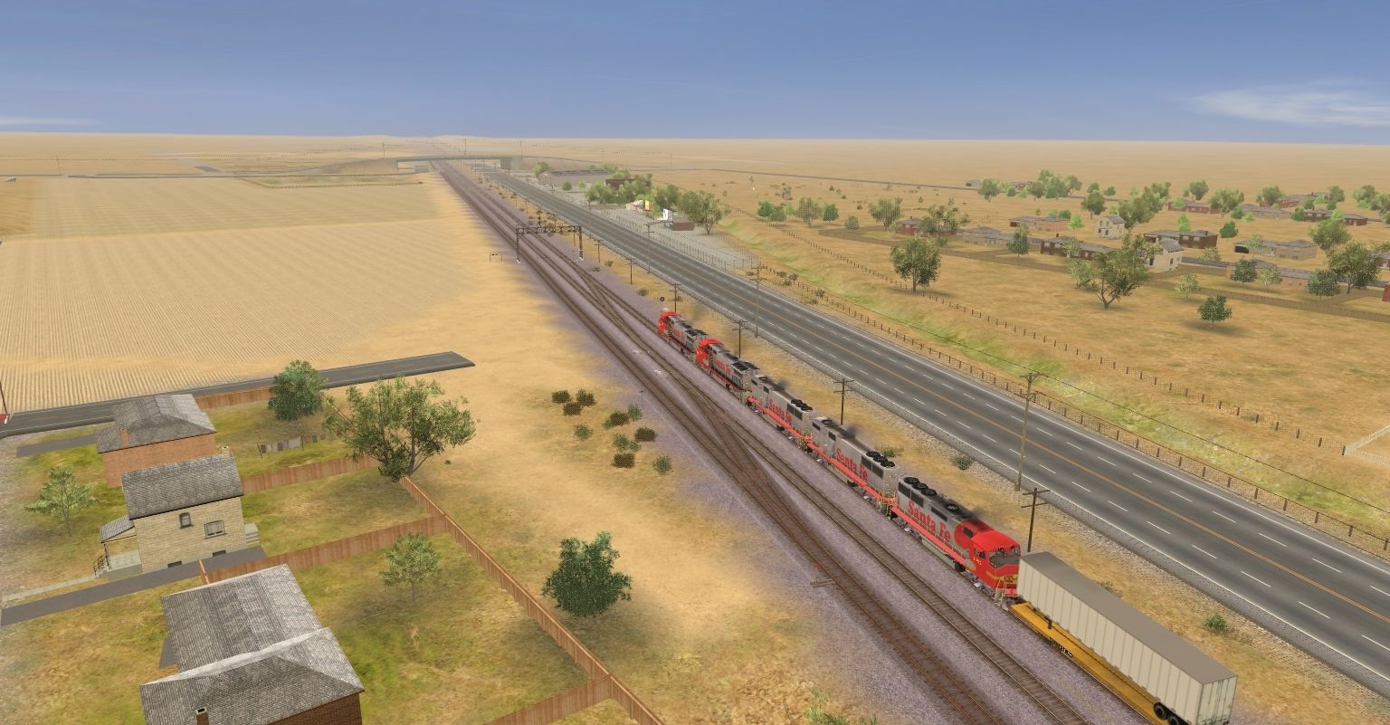 Posted by: EvanGaines | Posted:2019-12-26 01:36:03 Caption: Tags: Trainz: A New Era, Mojave Sub Division, ATSF #991 East, ATSF GP60M, ATSF GP60B, ATSF B40-8W, TTX 89ft TOFC Flatcar