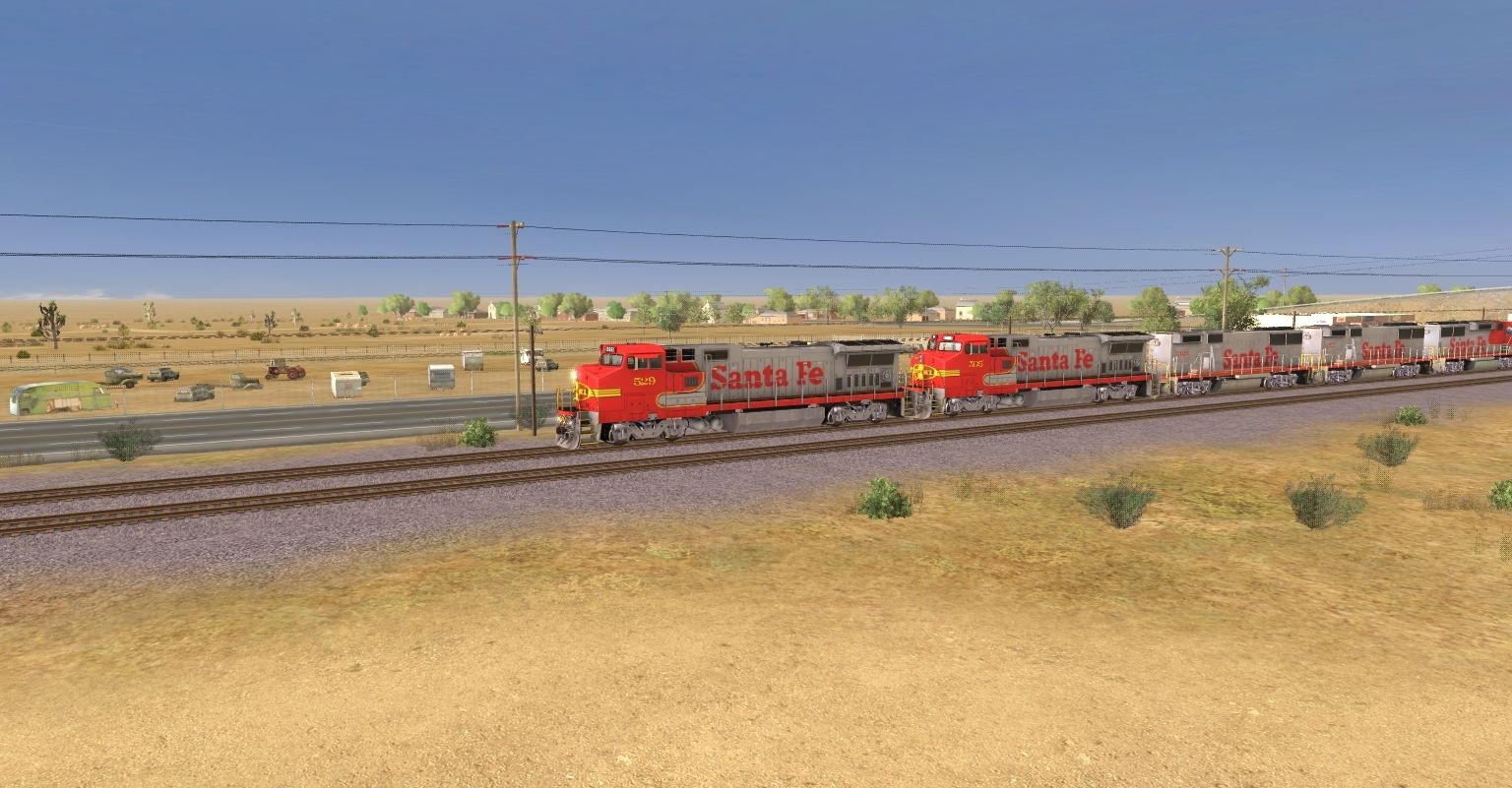 Posted by: EvanGaines | Posted:2019-12-26 01:36:24 Caption: Tags: Trainz: A New Era, Mojave Sub Division, ATSF #991 East, ATSF B40-8W, ATSF GP60B, ATSF GP60M, TTX 89ft TOFC Flatcar