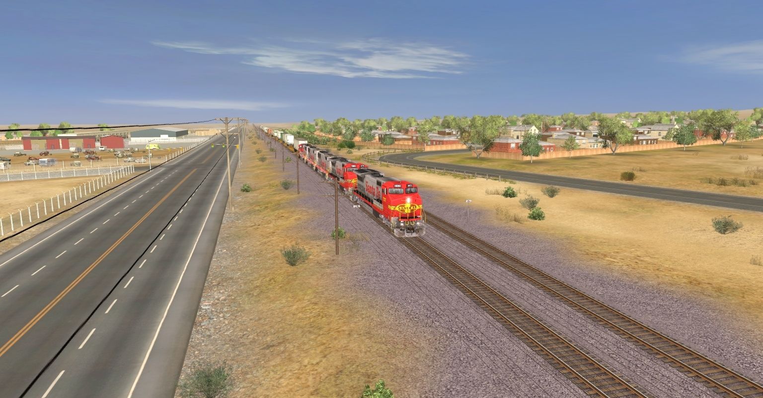 Posted by: EvanGaines | Posted:2019-12-26 01:36:30 Caption: Tags: Trainz: A New Era, Mojave Sub Division, ATSF #991 East, ATSF B40-8W, ATSF GP60B, ATSF GP60M, TTX 89ft TOFC Flatcar