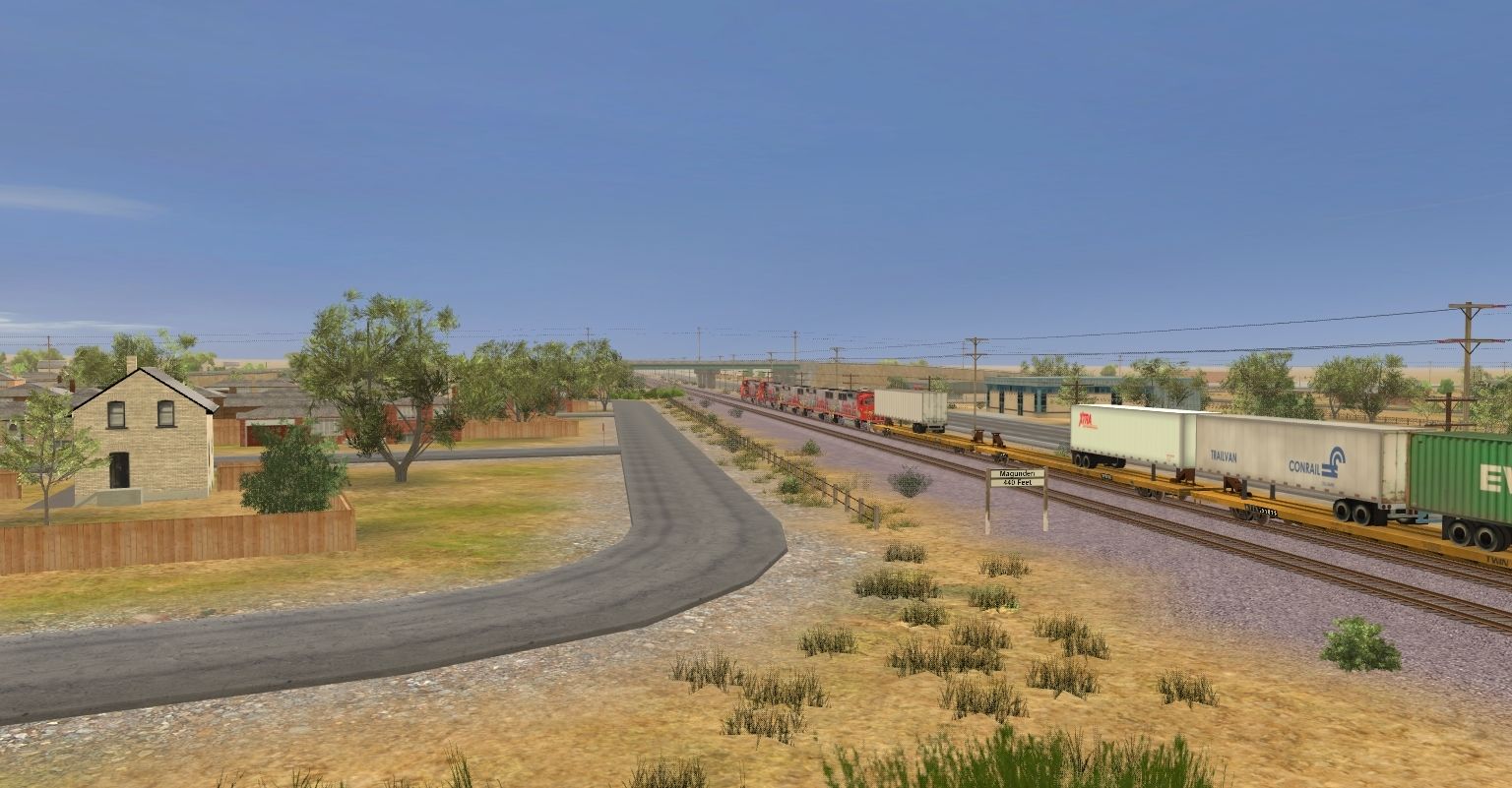 Posted by: EvanGaines | Posted:2019-12-26 01:36:43 Caption: Tags: Trainz: A New Era, Mojave Sub Division, ATSF #991 East, ATSF GP60M, ATSF GP60B, ATSF B40-8W, TTX 89ft TOFC Flatcar