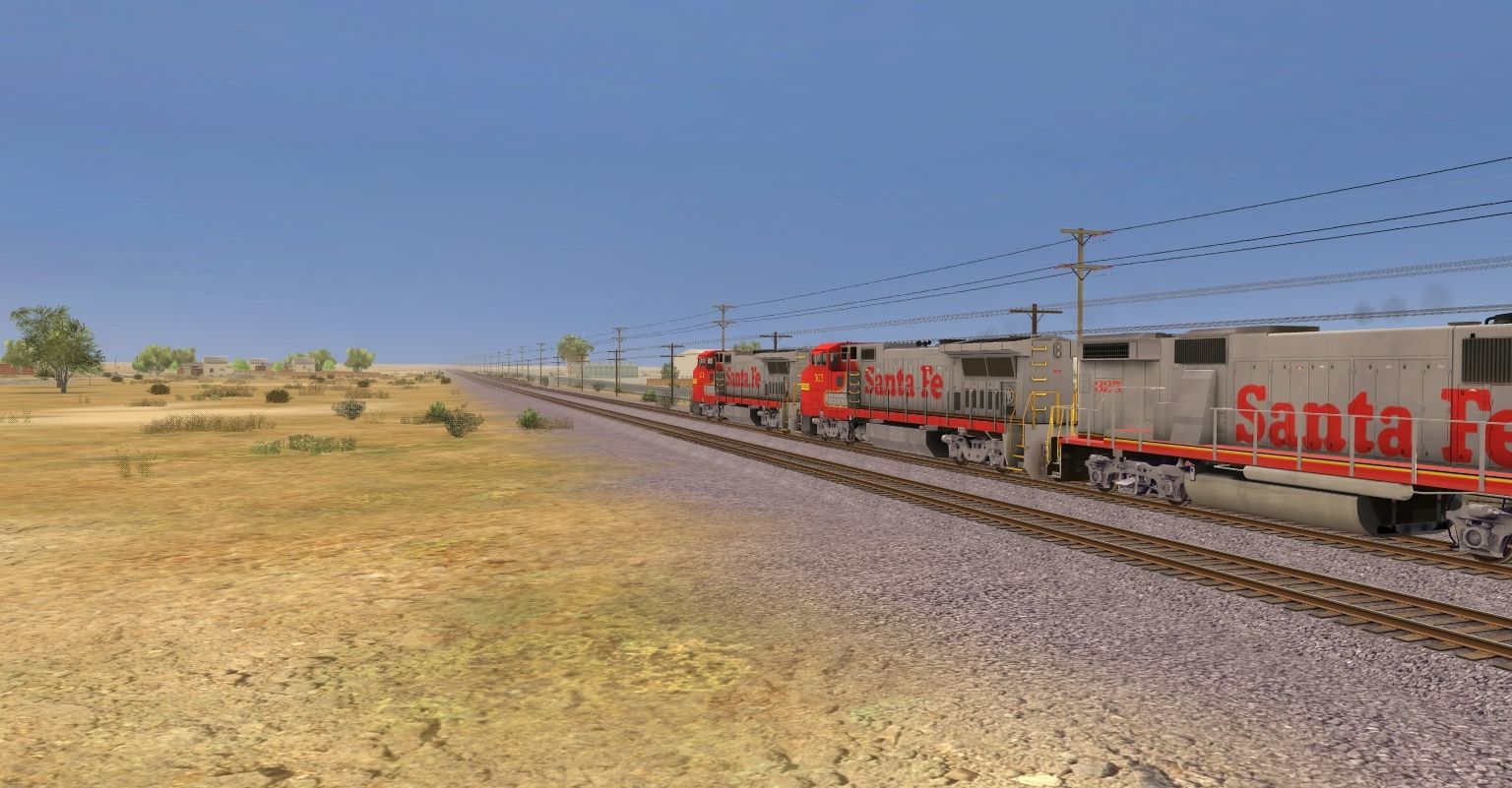 Posted by: EvanGaines | Posted:2019-12-26 01:36:48 Caption: Tags: Trainz: A New Era, Mojave Sub Division, ATSF #991 East, ATSF GP60M, ATSF GP60B, ATSF B40-8W, TTX 89ft TOFC Flatcar