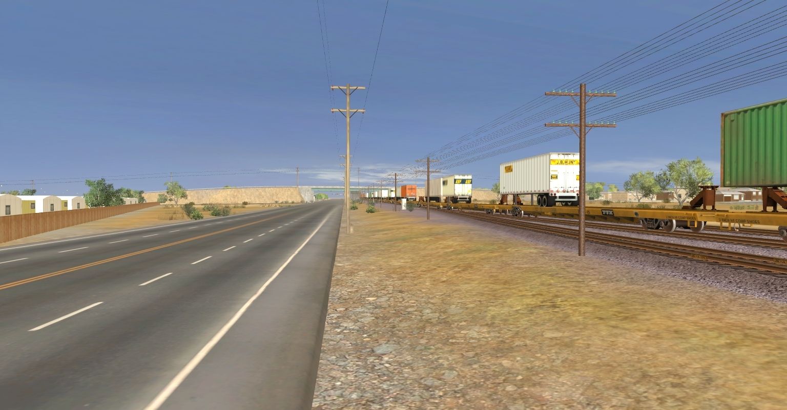 Posted by: EvanGaines | Posted:2019-12-26 01:36:55 Caption: Tags: Trainz: A New Era, Mojave Sub Division, ATSF #991 East, ATSF GP60M, ATSF GP60B, ATSF B40-8W, TTX 89ft TOFC Flatcar