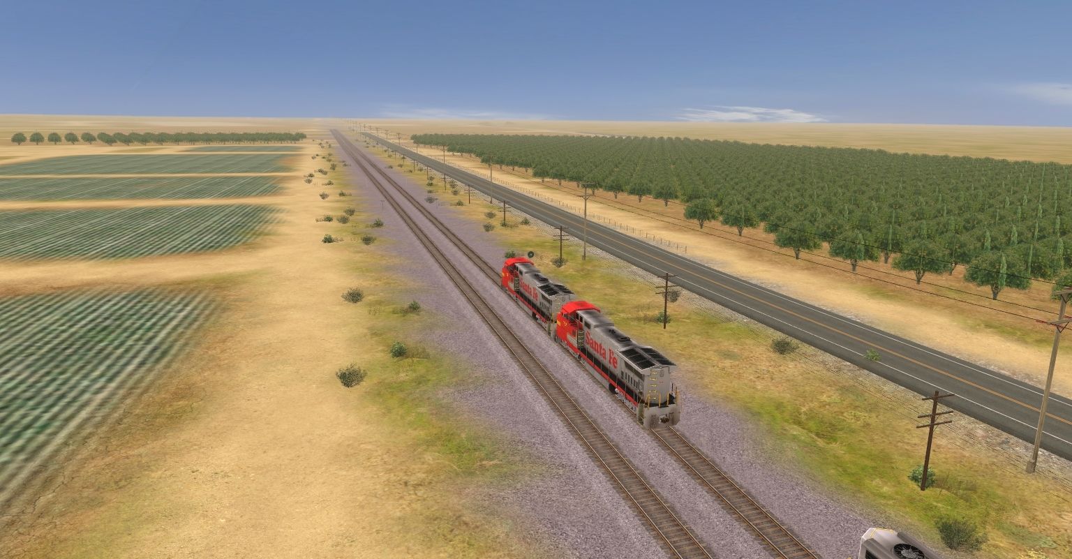 Posted by: EvanGaines | Posted:2019-12-26 01:37:34 Caption: Tags: Trainz: A New Era, Mojave Sub Division, ATSF #991 East, ATSF GP60M, ATSF GP60B, ATSF B40-8W, TTX 89ft TOFC Flatcar