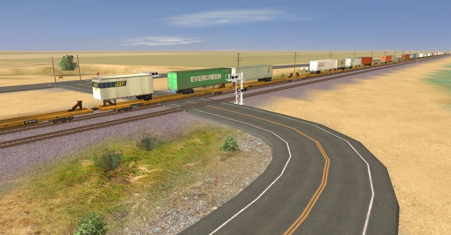 Posted by: EvanGaines | Posted:2019-12-26 01:38:11 Caption: Tags: Trainz: A New Era, Mojave Sub Division, ATSF #991 East, ATSF GP60M, ATSF B40-8W, TTX 89ft TOFC Flatcar