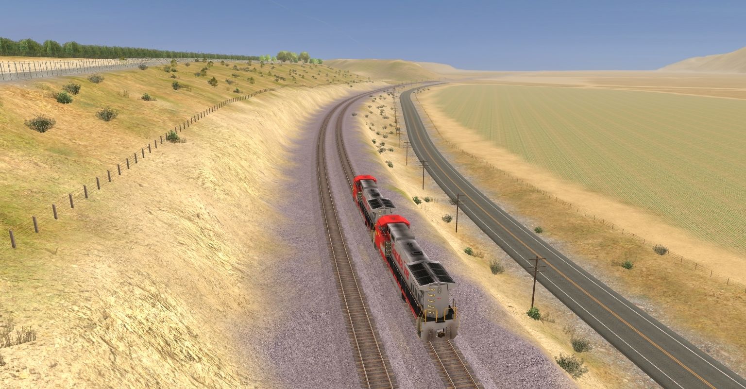 Posted by: EvanGaines | Posted:2019-12-26 01:38:42 Caption: Tags: Trainz: A New Era, Mojave Sub Division, ATSF #991 East, ATSF GP60M, ATSF B40-8W, TTX 89ft TOFC Flatcar