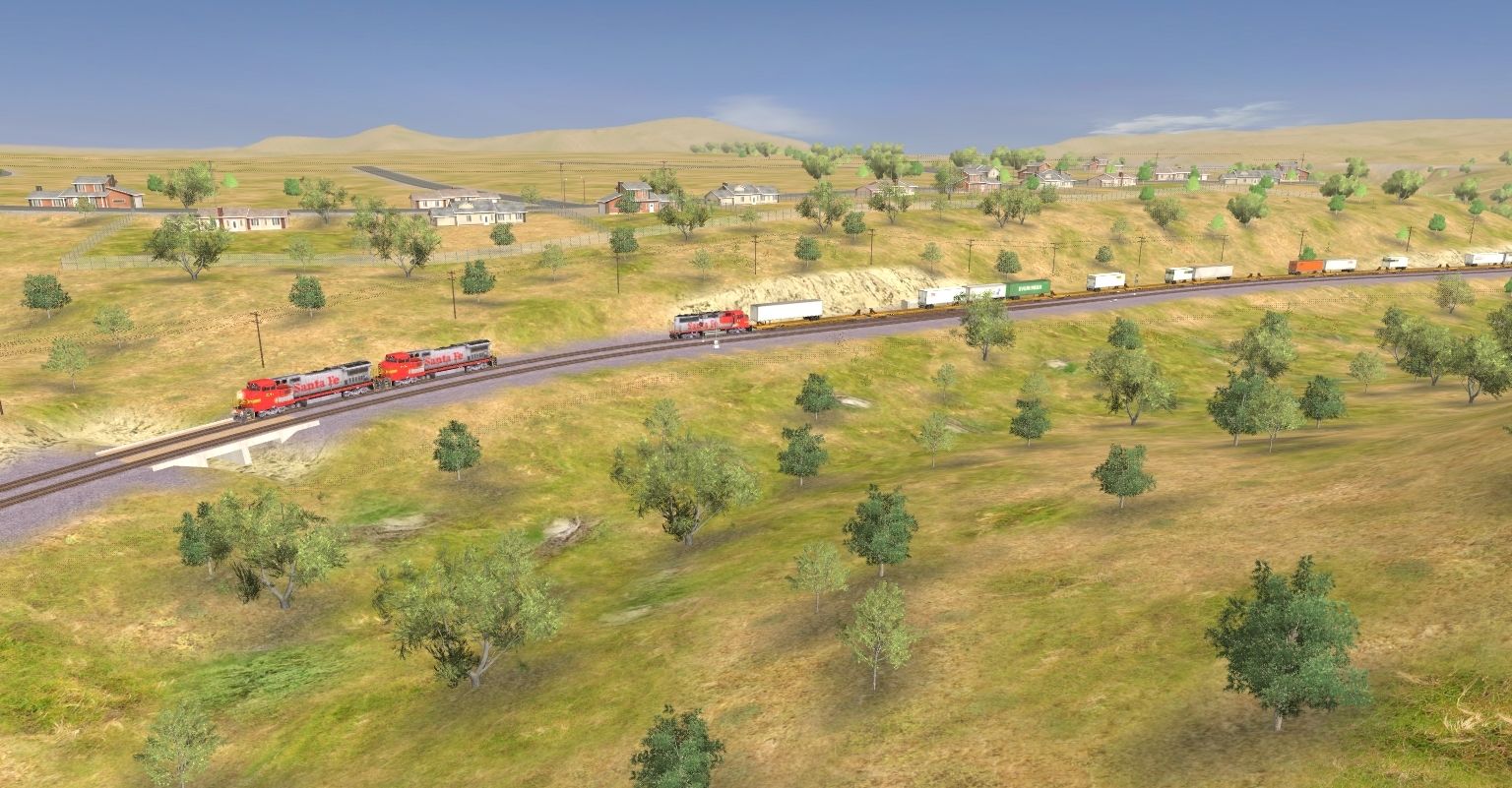 Posted by: EvanGaines | Posted:2019-12-26 01:39:32 Caption: Tags: Trainz: A New Era, Mojave Sub Division, ATSF #991 East, ATSF B40-8W, ATSF GP60M, TTX 89ft TOFC Flatcar