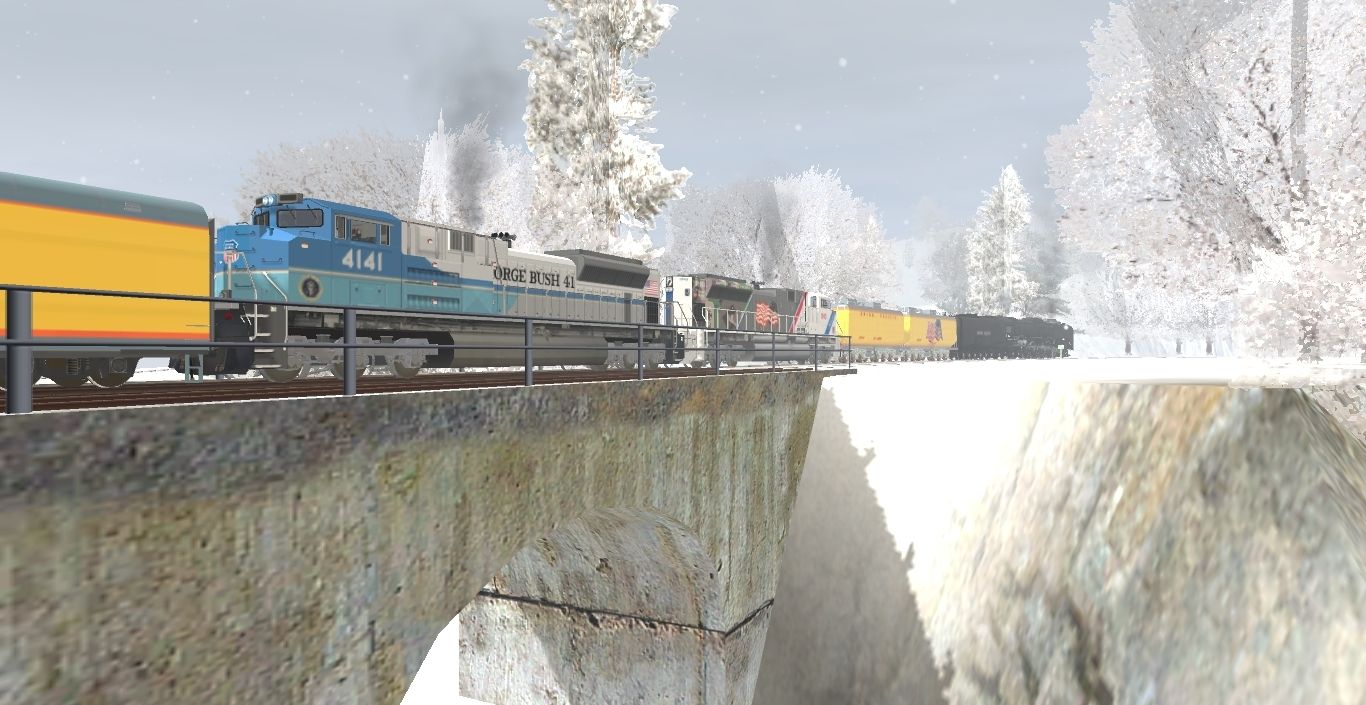 Tags: Trainz: A New Era, Marion HO Winter, Happy 75th!, EMD SD70ACe UP 4141 George Bush, UP 1943 Spirit of the Union Pacific, UP Class FEF-3 Modern, UP Heritage Fleet 6334 Art Lockman, UP Heritage Fleet 5818 Reed Jackson, UP Heritage Fleet 202 Willie James, UP Auxiliary Tender 814 (Joe Jordan) SR, UP Baggage 5769 Council Bluffs, UP Auxiliary Tender 809 (Jim Adams) SR, UP Class FEF 23-C Oil Tender Black, UP Heritage Fleet 4808 City of Los Angeles