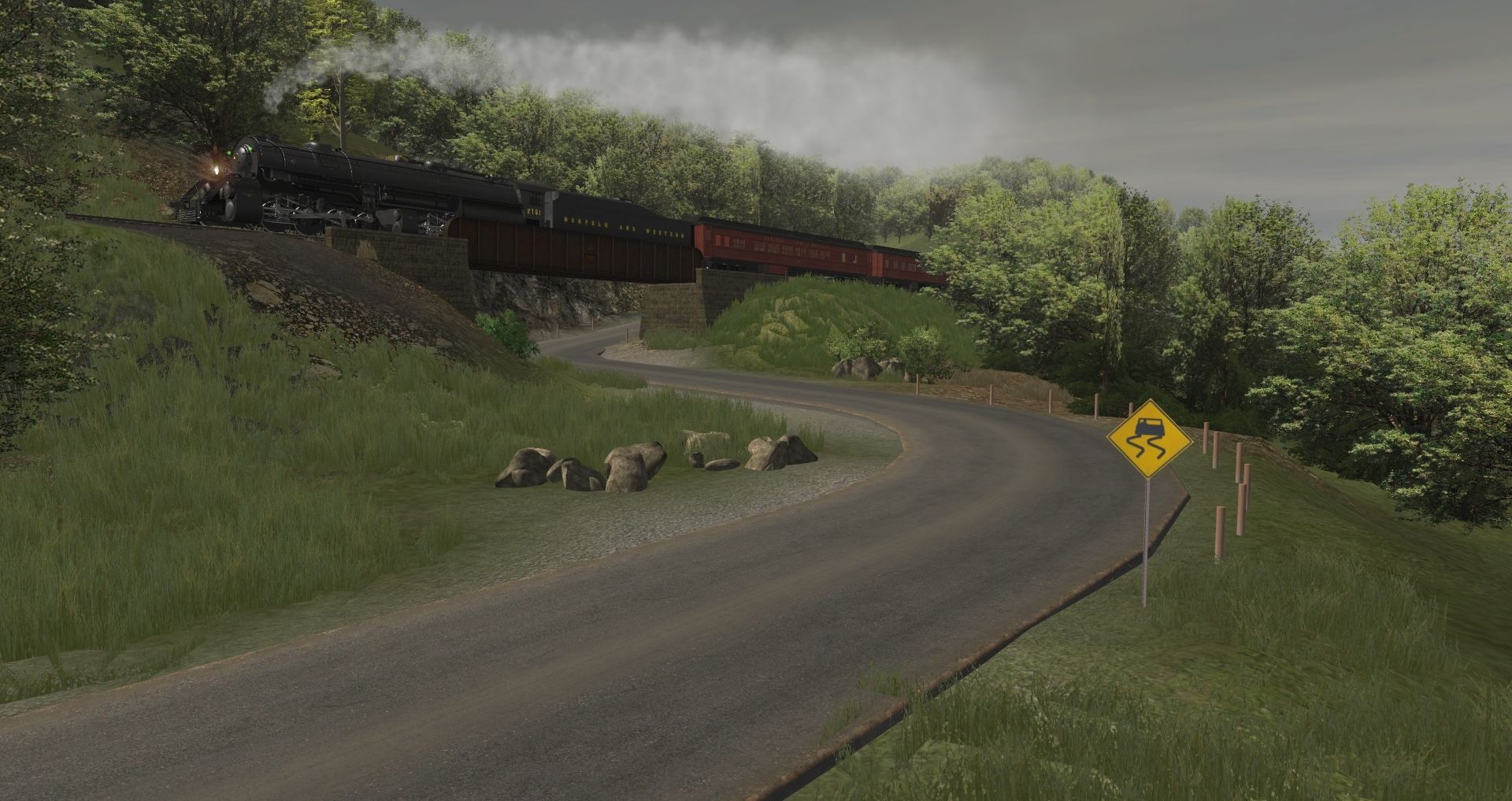 Tags: Trainz: A New Era, Coal Country, N&W Y6B, N&W Y6B Tender, N&W Pullman Coach 4 V1'09, N&W Pullman Coach 3 V1'09, N&W Pullman Coach 2 V1'09, N&W Pullman Coach 1 V1'09, RPPX Coach Car #22, RPPX Coach Car #21, RPPX Coach Car #20, RPPX Coach Car Dome