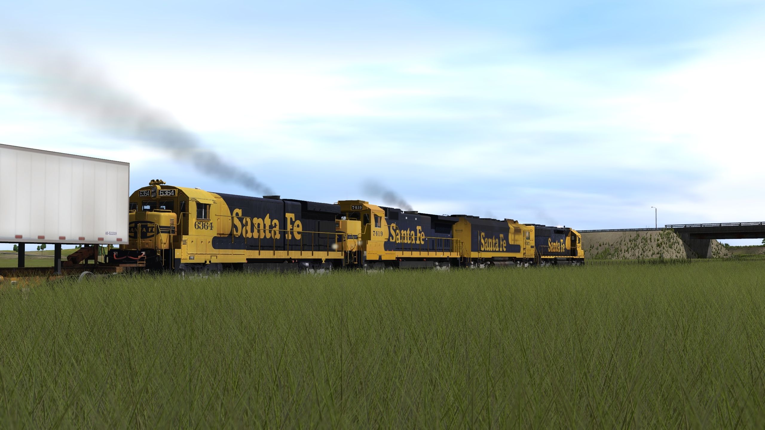Tags: Trainz Railroad Simulator 2019, UMR2020, Default, ATSF B23-7, GE B40-8 ATSF UPDATE, ATSF F45 5971, ATSF SD45-2 blue/yellow warbonnet, Spinecar B Unit Dirty, Spinecar D Unit Dirty, Spinecar C Unit Dirty, Spinecar E Unit Dirty, Spinecar A Unit Dirty, Spinecar B Unit, Spinecar E Unit