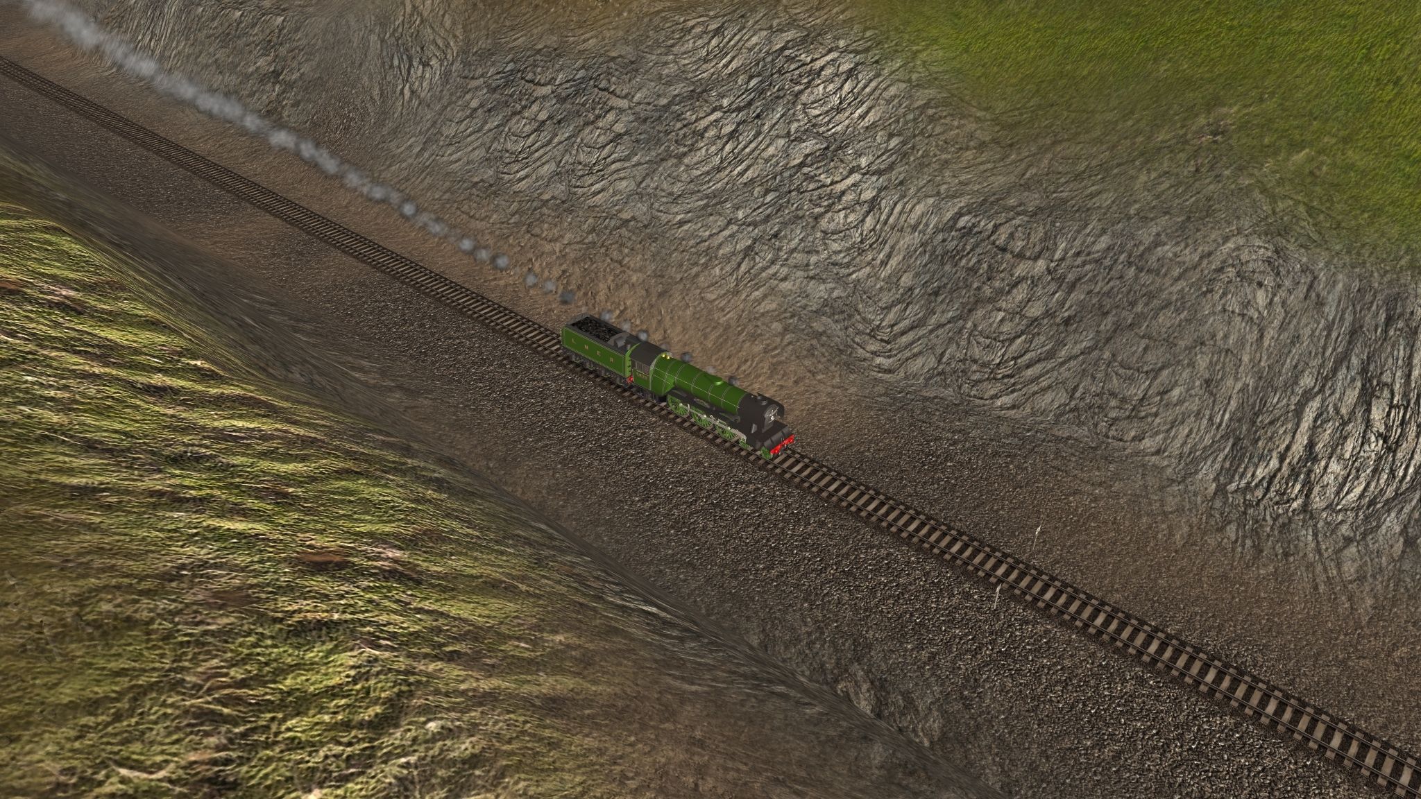 Tags: Trainz: A New Era, Kickstarter County, Lets get to work at the mill, Gresley A3 Flying Scotsman loco as preserved with deflectors, Gresley Corridor Tender LNER green