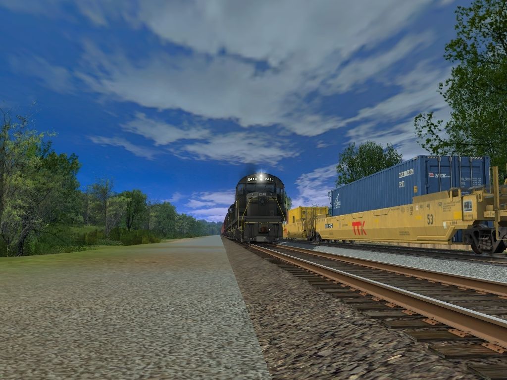 Tags: Trainz: A New Era, Pennsylvania & Berwind Phase 1, General freight train, CR RS27, NS C30-7, 53ft DTTX Wellcar (Single), 53ft DTTX Wellcar Weathered (Single), CR N7E, CR 100 Ton Hopper, CR H43 100T Hopper