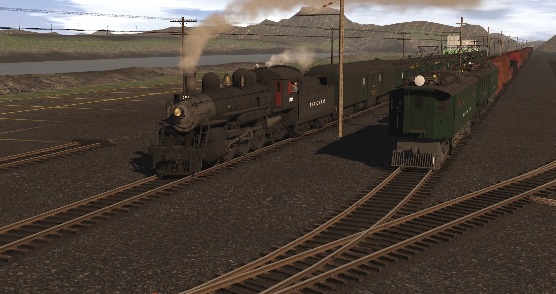 Tags: Trainz Railroad Simulator 2019, HB New World 1, HB New World 1 - Default, HB Q-1a Engine, HB B-5c Engine, HB X-5b Electric, HB X-3a Engine, Loco Boxcab Electric, HB K1 Engine, HB Oil Square Tender, HB Baggage Heavyweight, 40ft Boxcar Fowler BAR 2, 40ft Boxcar NYC, 41FT Gondola WVRR