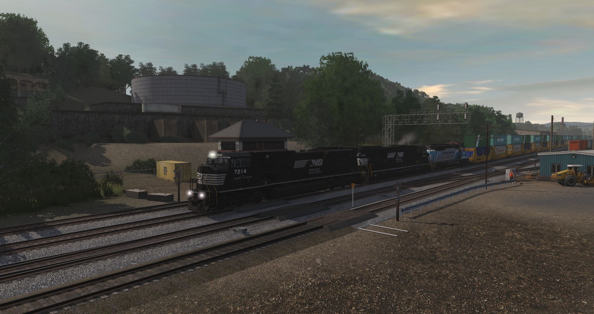 Tags: Trainz Railroad Simulator 2019, Datsun Junction, Datsun Junction - Default, NS SD80MAC, NS C40-9W Primer, NS SD60M (Triclops) #6810, NS C40-9W OLS 25th Anniversary, NS Maersk SD40-2 2a1, MP SW1500 Early, TRR railcar mover, GE ES44AC BNSF H3, BNSF B40-8W, BNSF C40-8W H3 Burnt, SECX GP38-2 Green Scheme