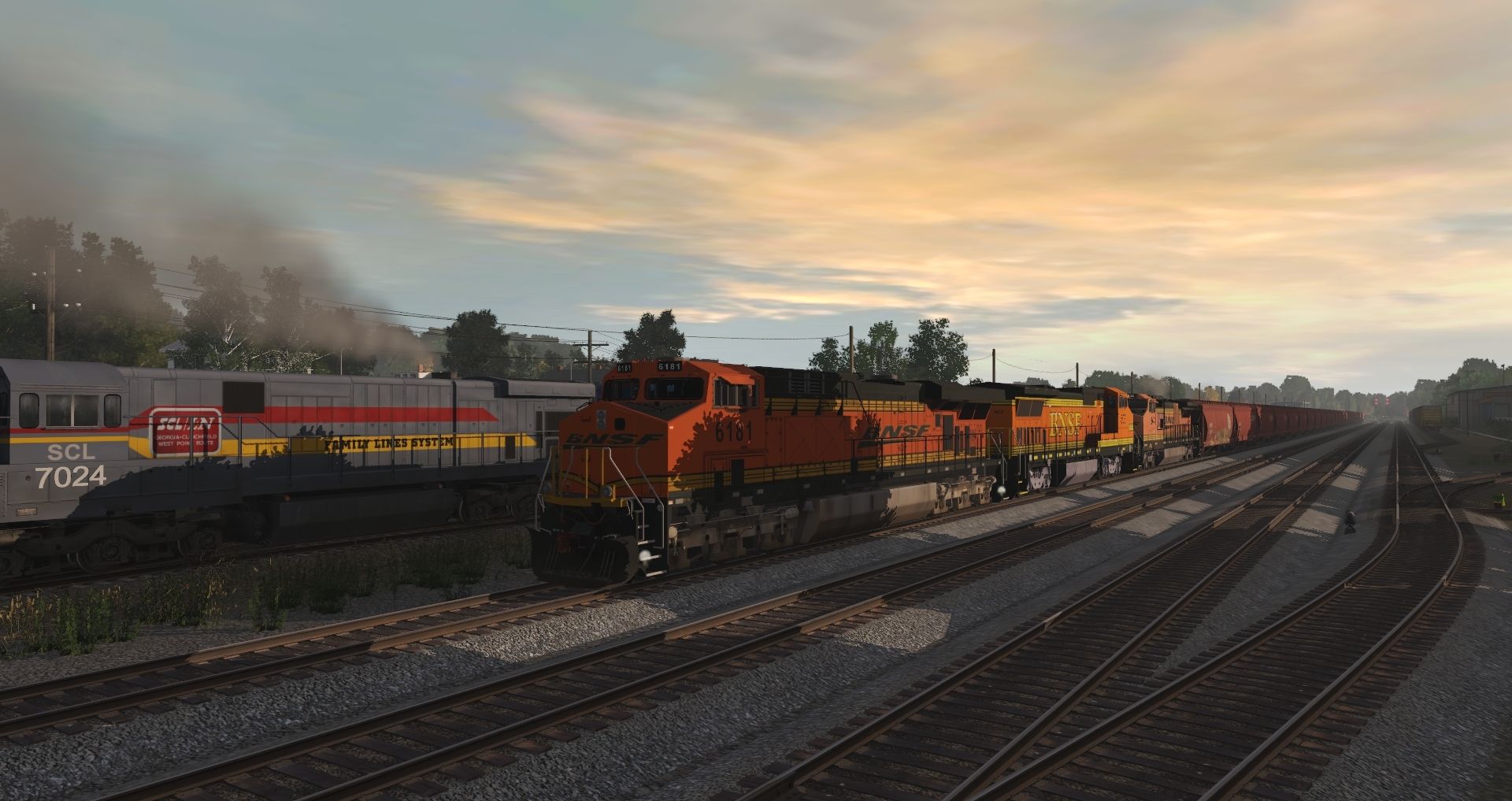 Tags: Trainz Railroad Simulator 2019, Datsun Junction, Datsun Junction - Default, GE ES44AC BNSF H3, CR SD60, BNSF B40-8W, BNSF C40-8W H3 Burnt, CSX C30-7, SECX GP38-2 Black Scheme, SCL C30-7, SECX GP38-2 Green Scheme, CSX SD60 yn2, P&LE SW1500, NS C40-9W Primer