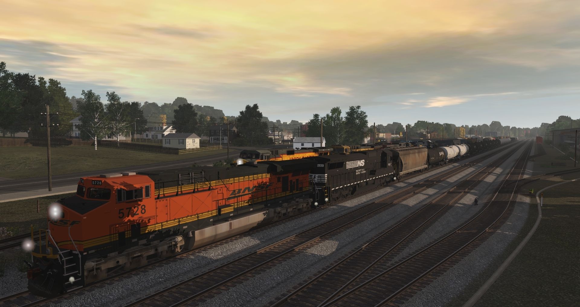 Tags: Trainz Railroad Simulator 2019, Datsun Junction, Datsun Junction - Default, GE ES44AC BNSF H3, GE C40-8 NS Ex CR, UP Dash 9-44CW-Lightning Stripe, UP AC4400CW EX-CNW 6703-6737 TS19, SP Dash 9-44CW, CSX AC4400CW #6 YN3b, CSX C30-7, CP SD9043MAC, P&LE SW1500, RVSX SW1500, NS C40-9W Primer