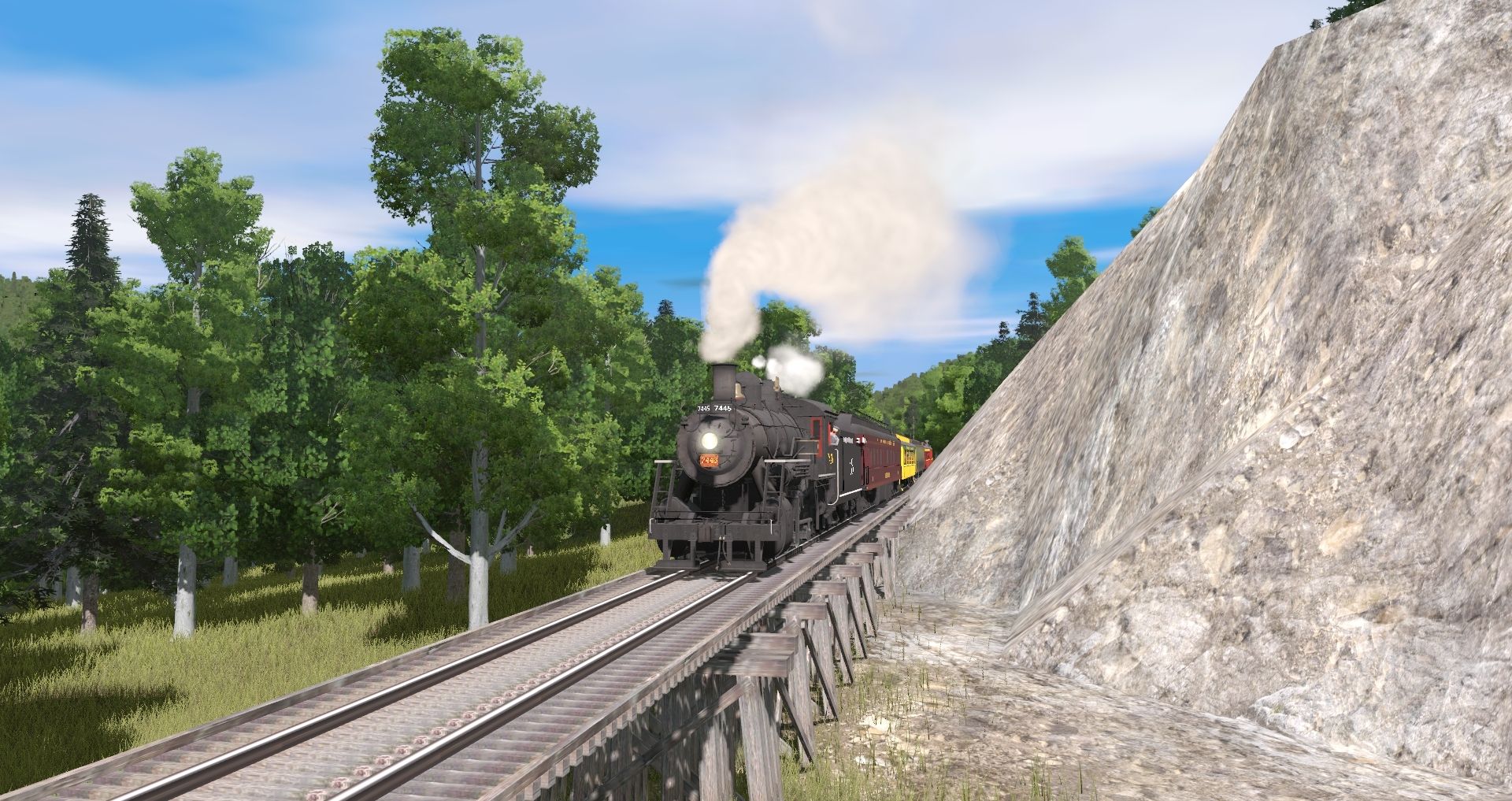 Tags: Trainz Railroad Simulator 2019, Muskanippee Valley-edited, Scenic Railroad, CN O18a Engine, DB&EV G16a Tender, DB&EV 05 Private Observation Car, SRC 14 Open Window Daffodil Spring, CN P70 Coach, SRC 09 Coach Walnut Hollow, SRC 08 Coach London Run, Southern Observation 1056 Lookout Mountain