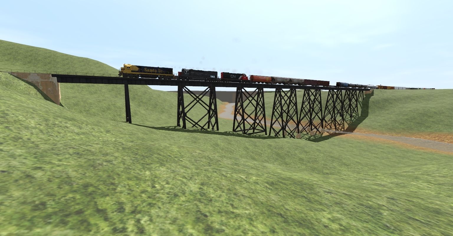 Caption: PIBC rumbles over manny creek trestle.