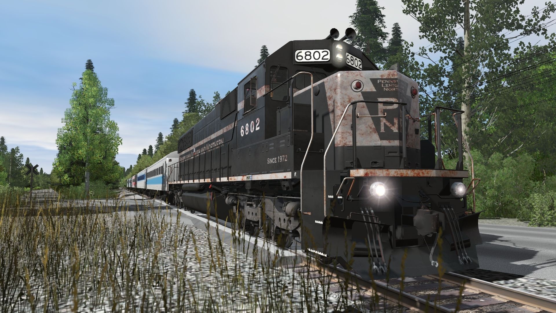 Tags: Trainz Railroad Simulator 2019, Pennsylvania Lehigh and Northern - New Jersey Division, Default, PLNR SD50 Weathered exCR, LIRR P-72 Type Coach (1970's), LIRR P-72 Parlor Car Type Coach, LIRR P-75 Type Coach (Test)