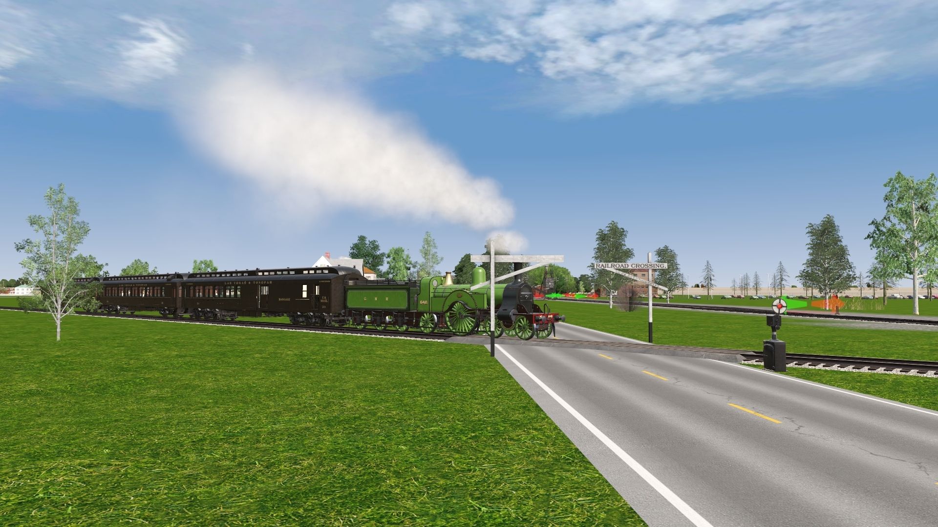 Tags: Trainz Railroad Simulator 2019, Wassneek Valley RR, New Circle route - Default, GNR Stirling 8ft Single (Domed Boiler), GNR Stirling Tender, LV&T Wood Combine, LV&T Wood Coach, LV&T Wood Chair Car