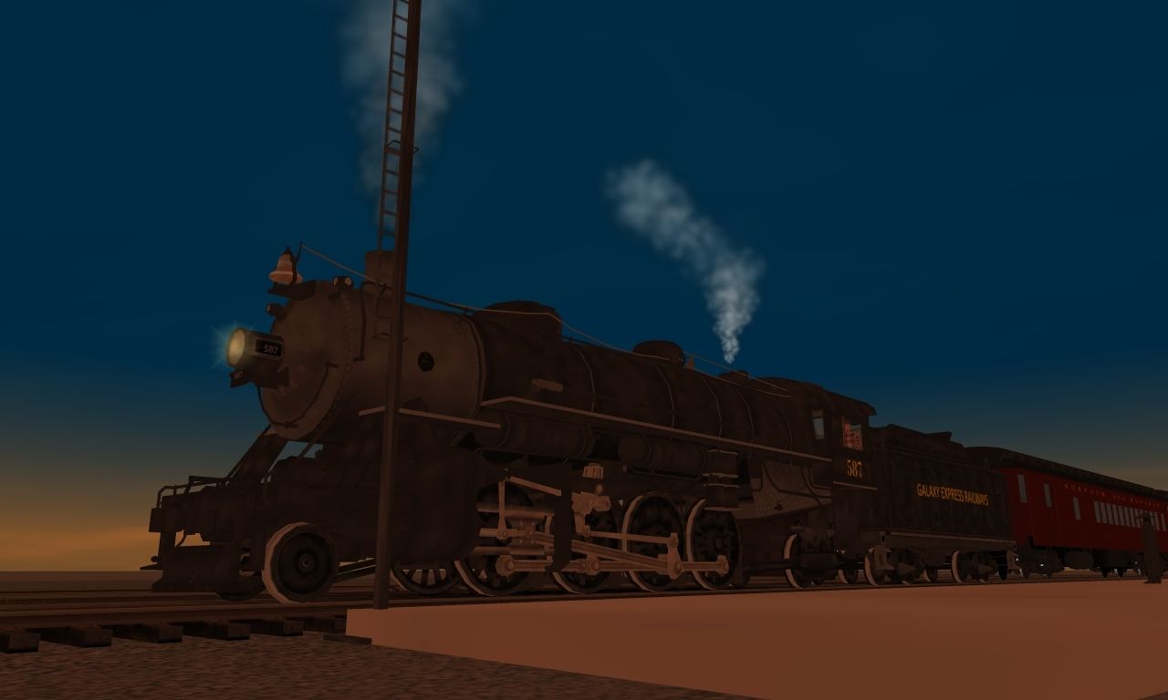 Posted by: Codster | Posted:2020-08-11 07:11:38 Caption: Tags: Trainz: A New Era, Galaxy, Default, NKP 587, GE 587 Tender, N&W Combine, N&W Coach