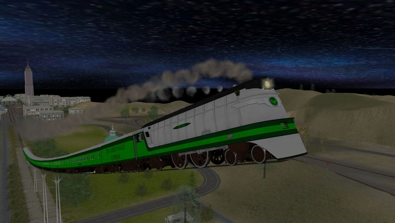Tags: Trainz: A New Era, The Galaxy Railway - Extended Route, Green Eagle Express Engine, Green Eagle Express Tender, Green Eagle Express Coach, Green Eagle Express Observation Coach