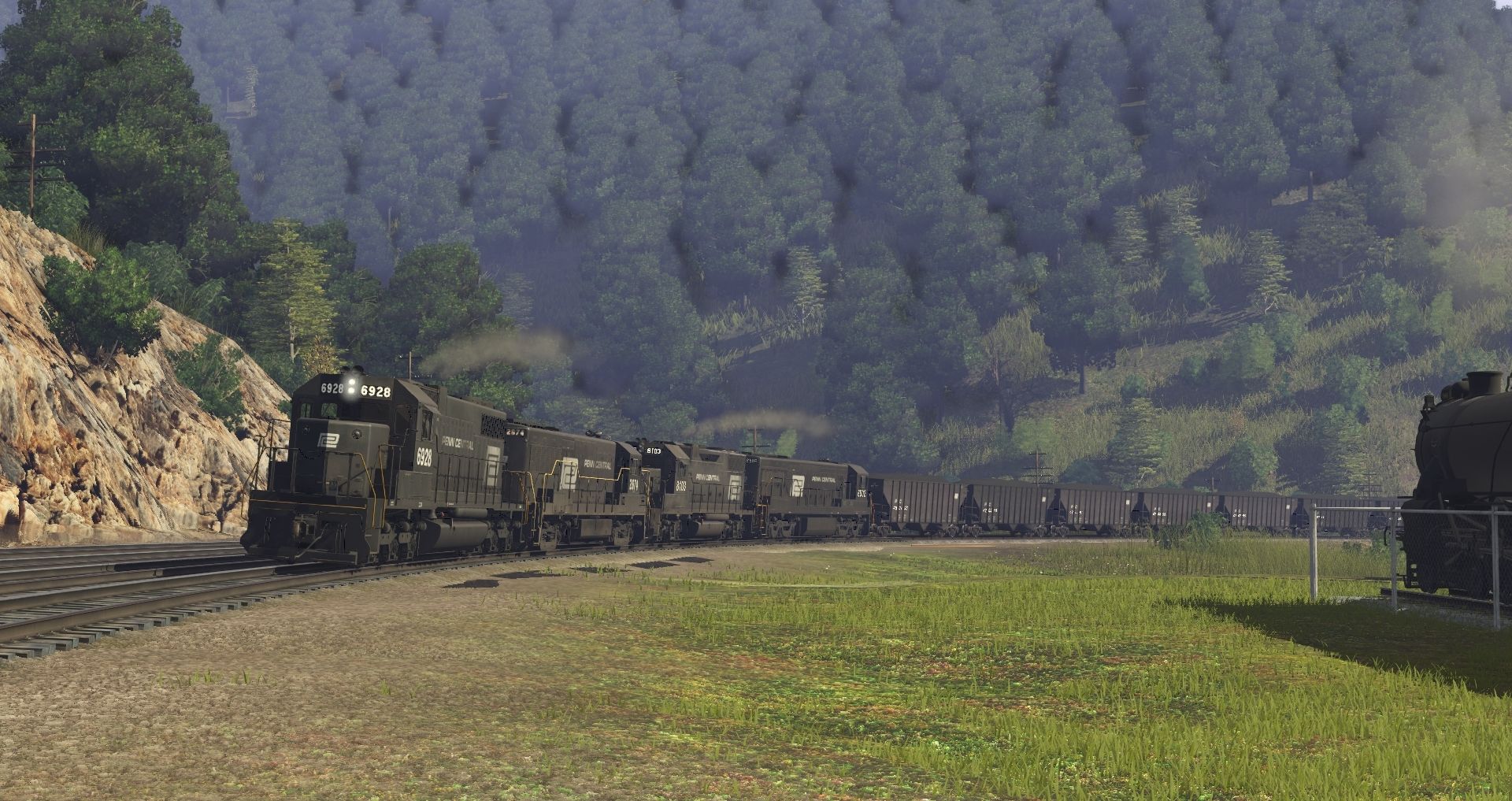 Tags: Trainz Railroad Simulator 2019, HSC updated enviro, Default, PRR K4s Engine PreWar, PC SD38, PC ex-NH U25B ph4, PC GP38-2, PC ex-PRR U25C ph3a, PRR Engine Q2 4-4-6-4, PRR K4s Tender PreWar, PC 100 Ton Hopper, PRR N5c Caboose 1, PRR Engine Q2 Tender
