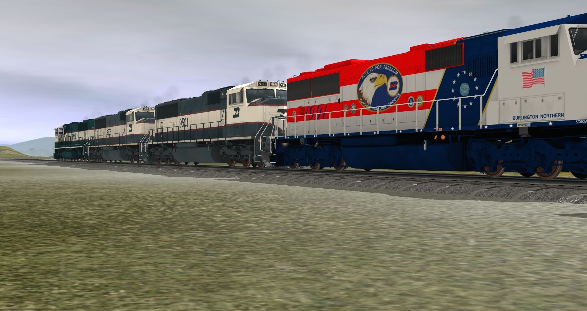 Tags: Trainz: A New Era, Burlington Northern, Default, BN SD60M #1991, BN SD70MAC, BN SD70MAC, SD70MAC: BNSF #9815, BN 48 Husky Stack Early, 89Ft Autorack BN, 89Ft Autorack UP 2, 89Ft Autorack UP 3, 89Ft Autorack UP, Autorack PE Bi-Level TTBX FRISCO #, Autorack PE Bi-Level TTBX Milwaukee Road #