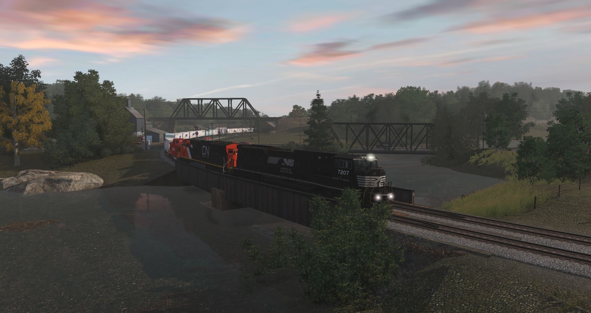 Tags: Trainz Railroad Simulator 2019, Datsun Junction, Datsun Junction - Default, NS SD80MAC, ES44AC Tier 4 Locomotive CN, MWPX C40-8, MWPX GP38-2, Whitcomb 50 tonner # 12, Whitcomb 50 tonner # 11, SLSF (BN) GP50, SLSF SW1500, RVSX SW1500, CORP GP40-2, CORP GP38-3
