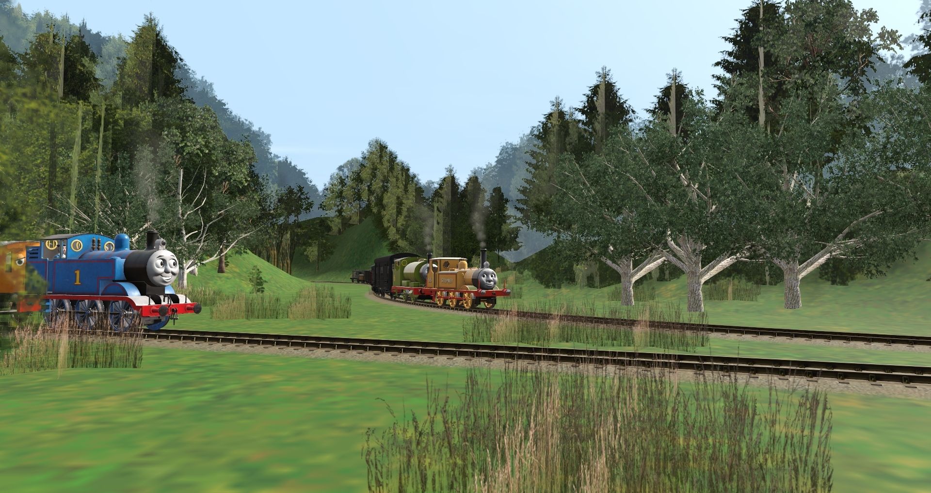 Tags: Trainz Railroad Simulator 2019, Diorama, Diorama - Default, TTTE - Thomas The Tank Engine [TRS19], TTTE - Stepney, TTTE - Percy the Small Engine S1-S5 (TRS19), TTTE - Annie [TRS19], TTTE - Clarabel [TRS19], TTTE - CCT Van, TRW - SECR 8 Wheeled Van, TRW - LBSC 8T Van, TRW - BR 21T Mineral Wagon, TRW - SR 25T Pillbox Brakevan, TRW - BR 13T Conflat (TVS)